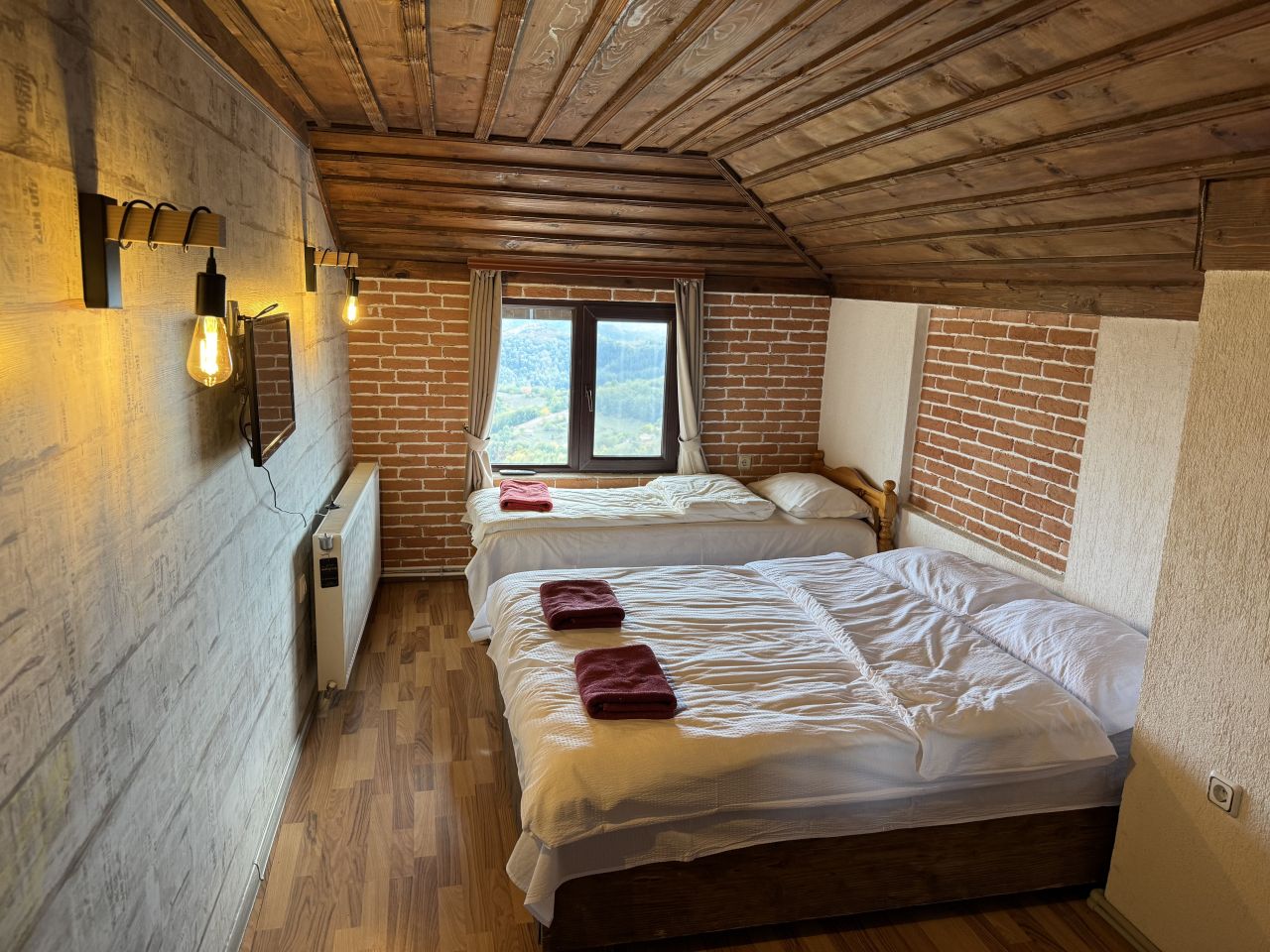 Александрова вила 2 - Леглова база - 5 спални със самостоятелни санитарни възли, във всяка спалня има и разтегателен диван. Вилата разполага с механа, веранда с барбекю и навес с 12 седящи места. Механата е напълно оборудвана с прибори и пособия за готвене и сервиране, музикална уредба и телевизор със сателитна телевизия. Камината в механата осигурява уют и топлина. На първия етаж на вилата има 2 спални. Вторият етаж разполага с 3 спални и панорамни прозорци към откриващата се невероятна гледка.