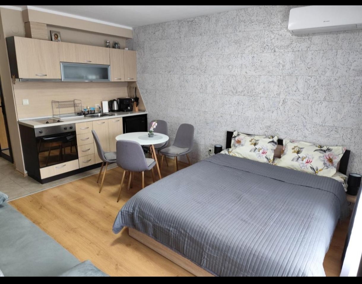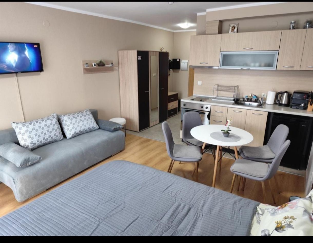 Студиото разполага с телевизор, напълно оборудван кухненски бокс с всички необходими електро уреди и посуда, личен WI-FI, банята е с вана и сешоар.