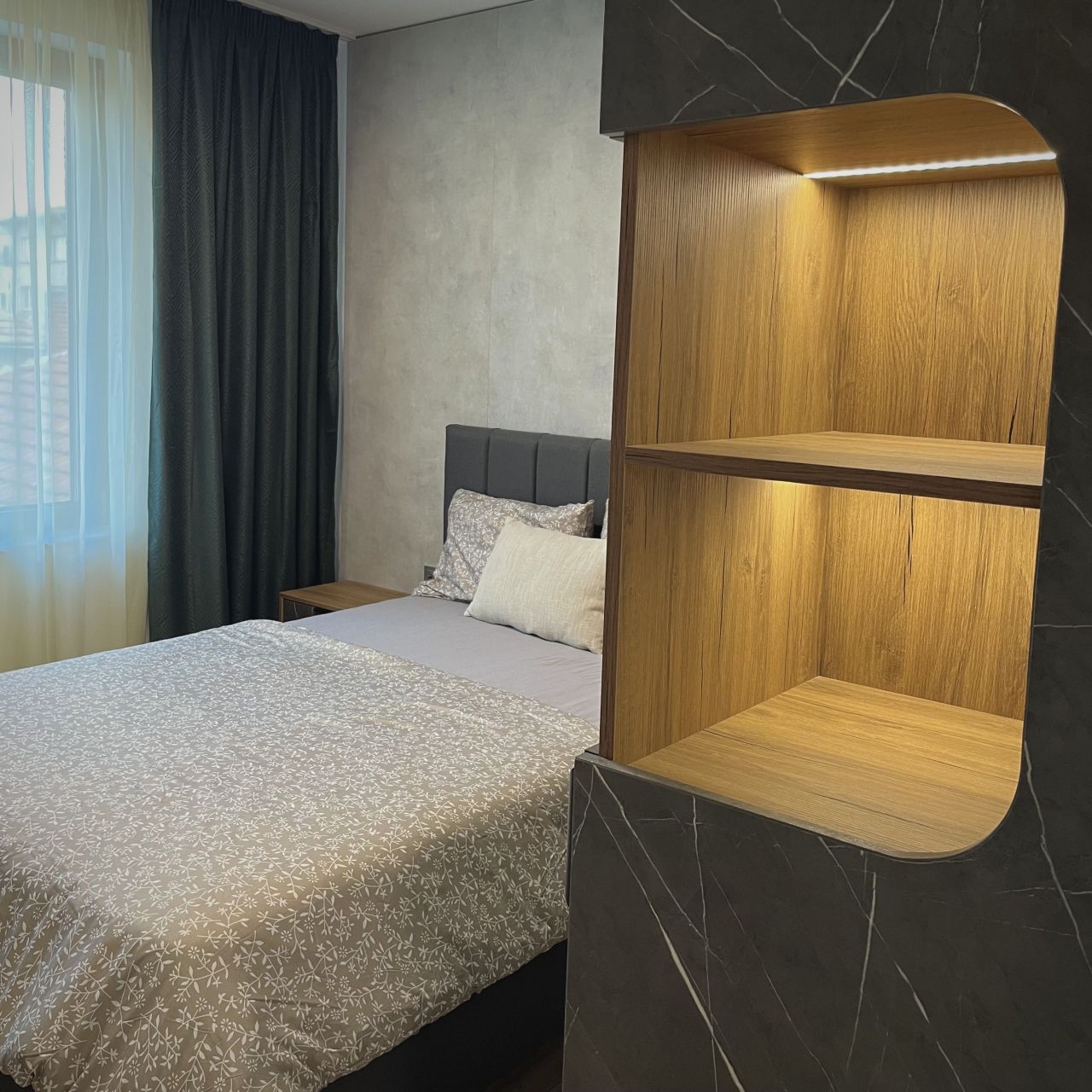 Предлагаме комфортен и уютен апартамент, разположен само на 10 минути пеша от центъра на Велико Търново. Кварталът е тих и спокоен с удобен достъп до градски транспорт, което го прави отличен избор както за почивка, така и за бизнес престой. Апартаментът разполага със спалня и разтегателен диван в дневната.