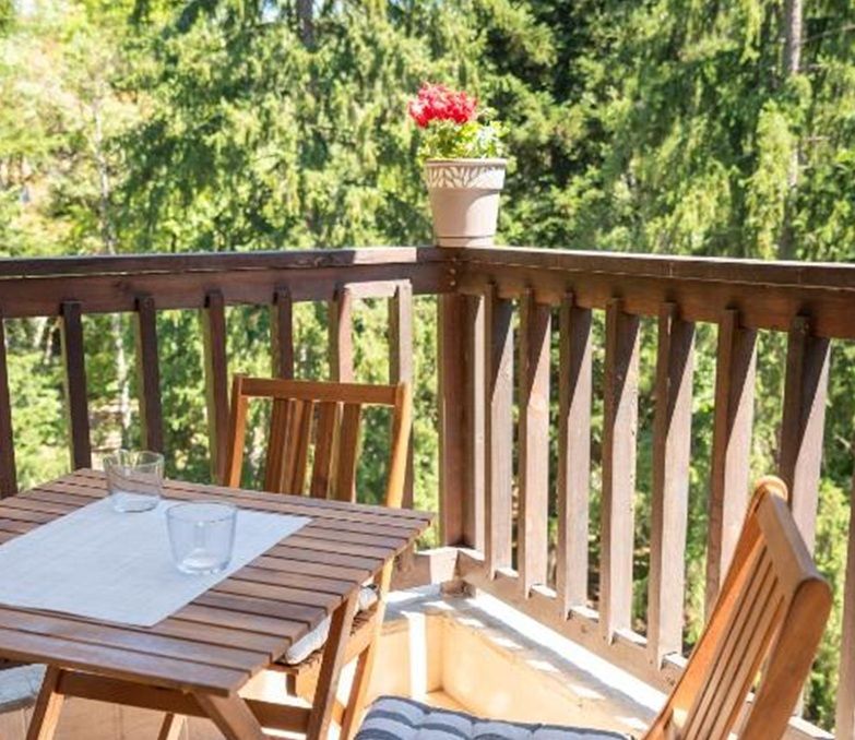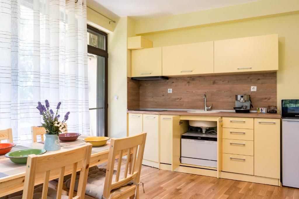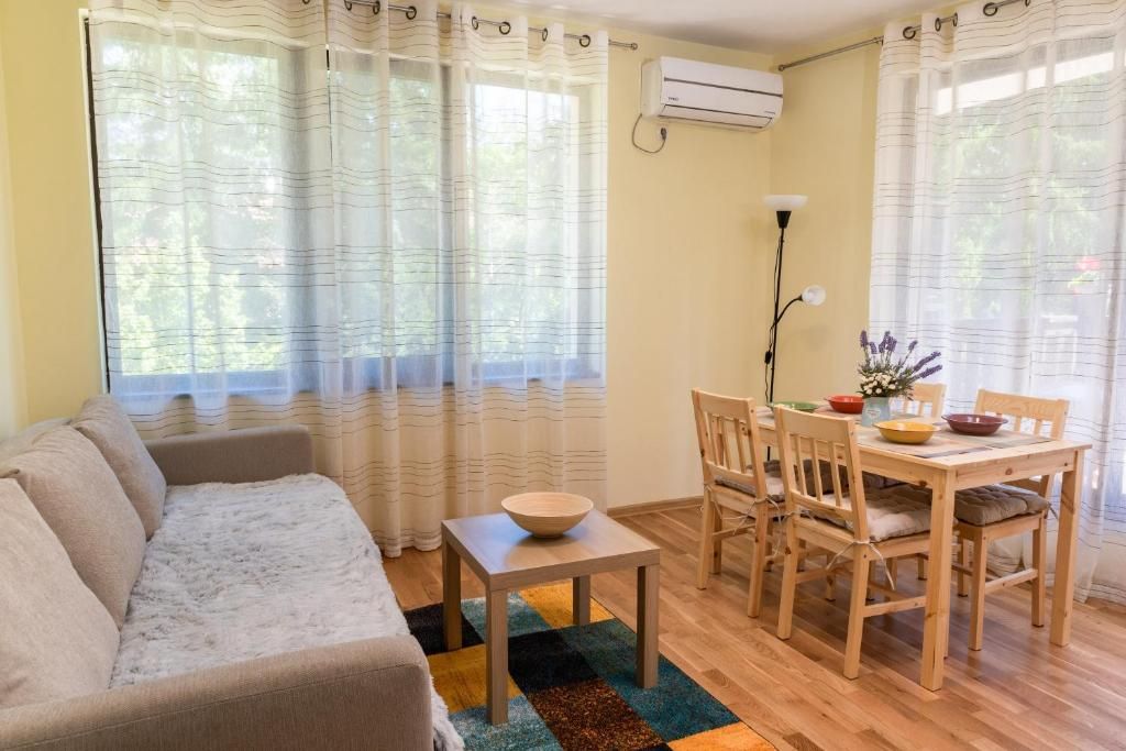 Апартаментът разполага с една спалня, всекидневна с телевизор, диван, кът за хранене и оборудван кухненски бокс, тераса с прекрасен изглед и санитарен възел. Помещенията са климатизирани.
