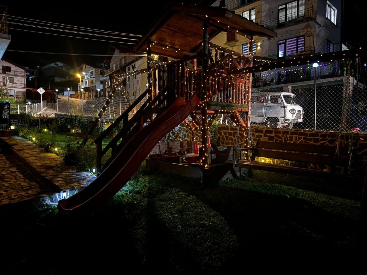 - На ваше разположение има цветен двор, където спокойно може да релаксирате сред зеленина, дива природа и чист въздух, заедно със половинката, семейството, децата и/или приятелите си!