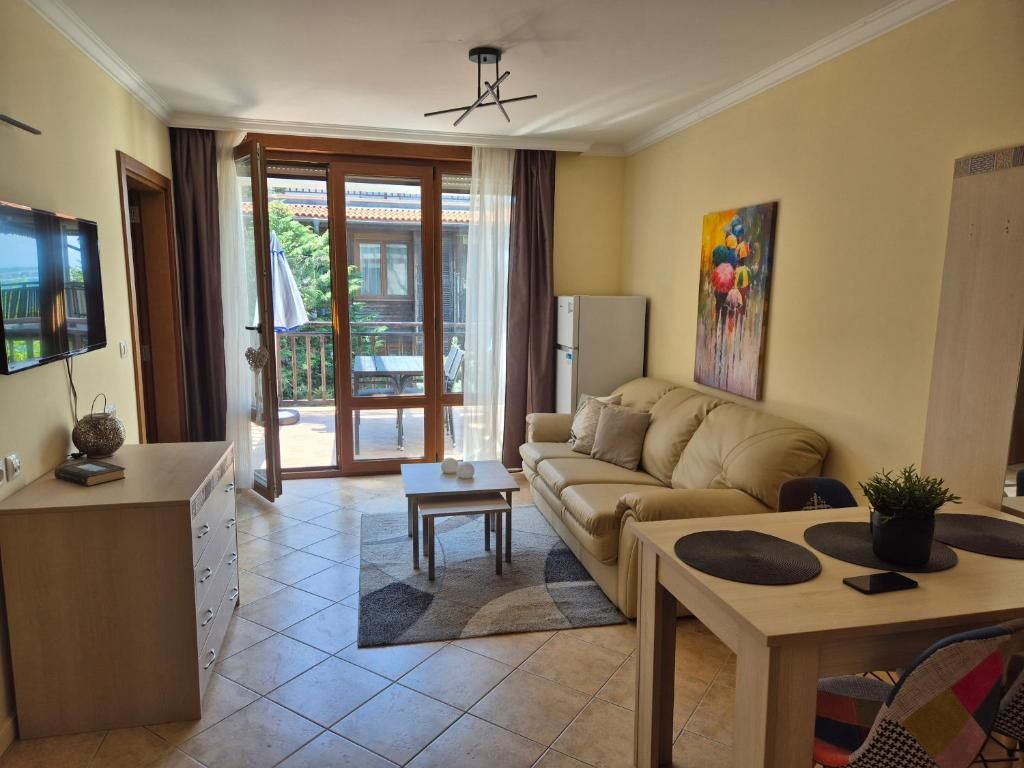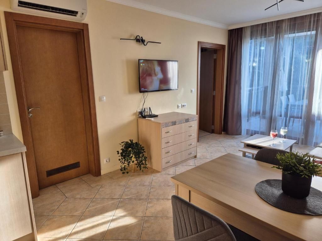 Апартаментът е в тихата част, до инфинити басейна и до един от най-добрите плажове в България. Апартаментът се състои от дневна част (напълно оборудвана кухня, хол и трапезария), спалня и баня. В нея могат да се настанят до 4 човека – 2 в спалнята и до 2 на диван, който се превръща в легло.
