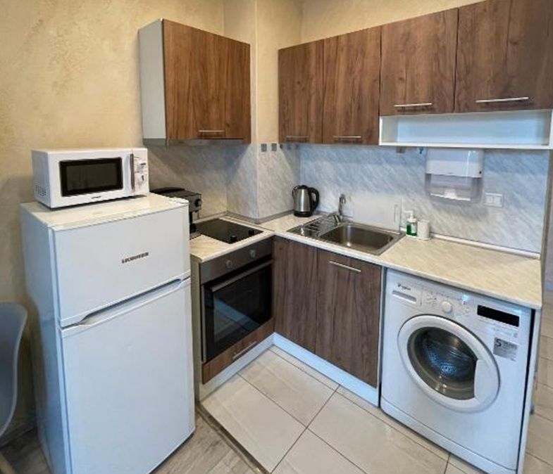 Colonel apartment 945 разполага със стая, в която се намират спалня и удобен разтегателен диван, кабелна телевизия, телевизор Smart - 43 инчa, самостоятелен санитарен възел, климатик с индивидуален контрол, безжичен интернет, хладилник, пералня, микровълнова фурна, печка, вградени котлони, кафе машина и електрическа кана.