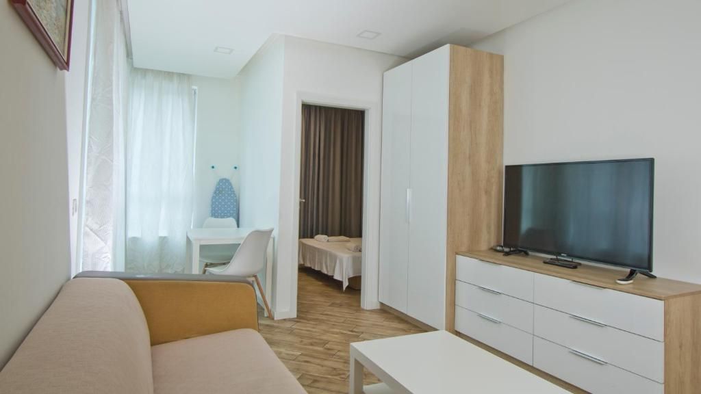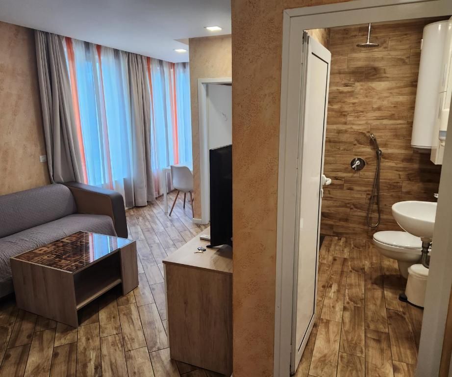 Жилището разполага с една спалня, всекидневна с разтегателен диван, кът за хранене, оборудван кухненски бокс, тераса, климатик, безплатен Wi Fi и санитарен възел.