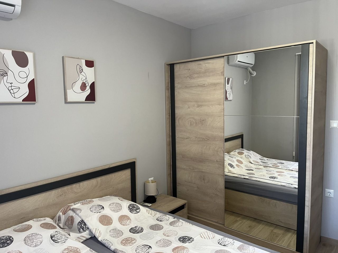 Чисто нов двустаен апартамент в нова сграда - кв. Сарафово, напълно обзаведен - ТV, интернет, климатици, пералня, хладилник, съдомиялна, вградени котлони и фурна, микровълнова, кана за вода, кафе машина, тостер, сешоар, пълен комплект прибори за хранене, ютия, дъска за гладене, слънчева тераса.