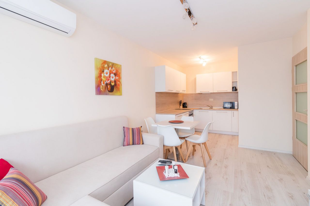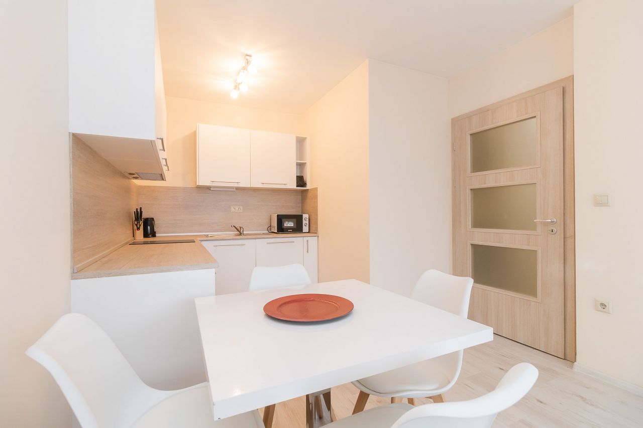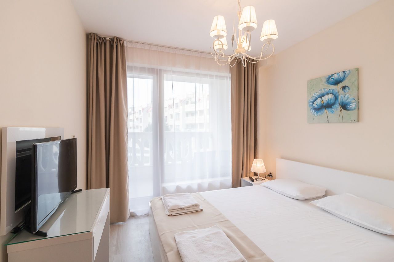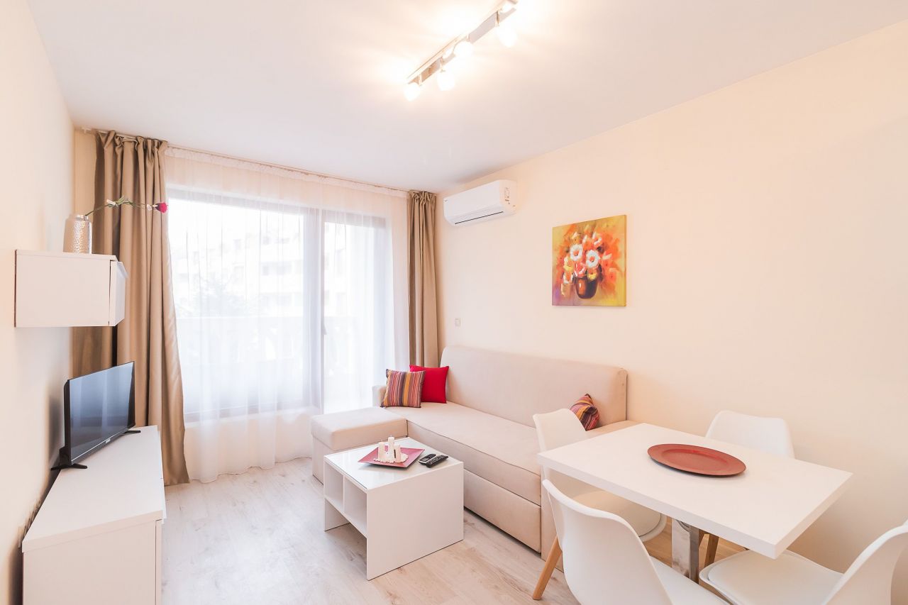 1 минута до плажа, до прекрасно озеленен двор на комплекса, до кафе слaдкарница и заведение за хранене.