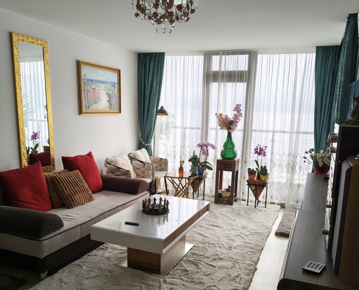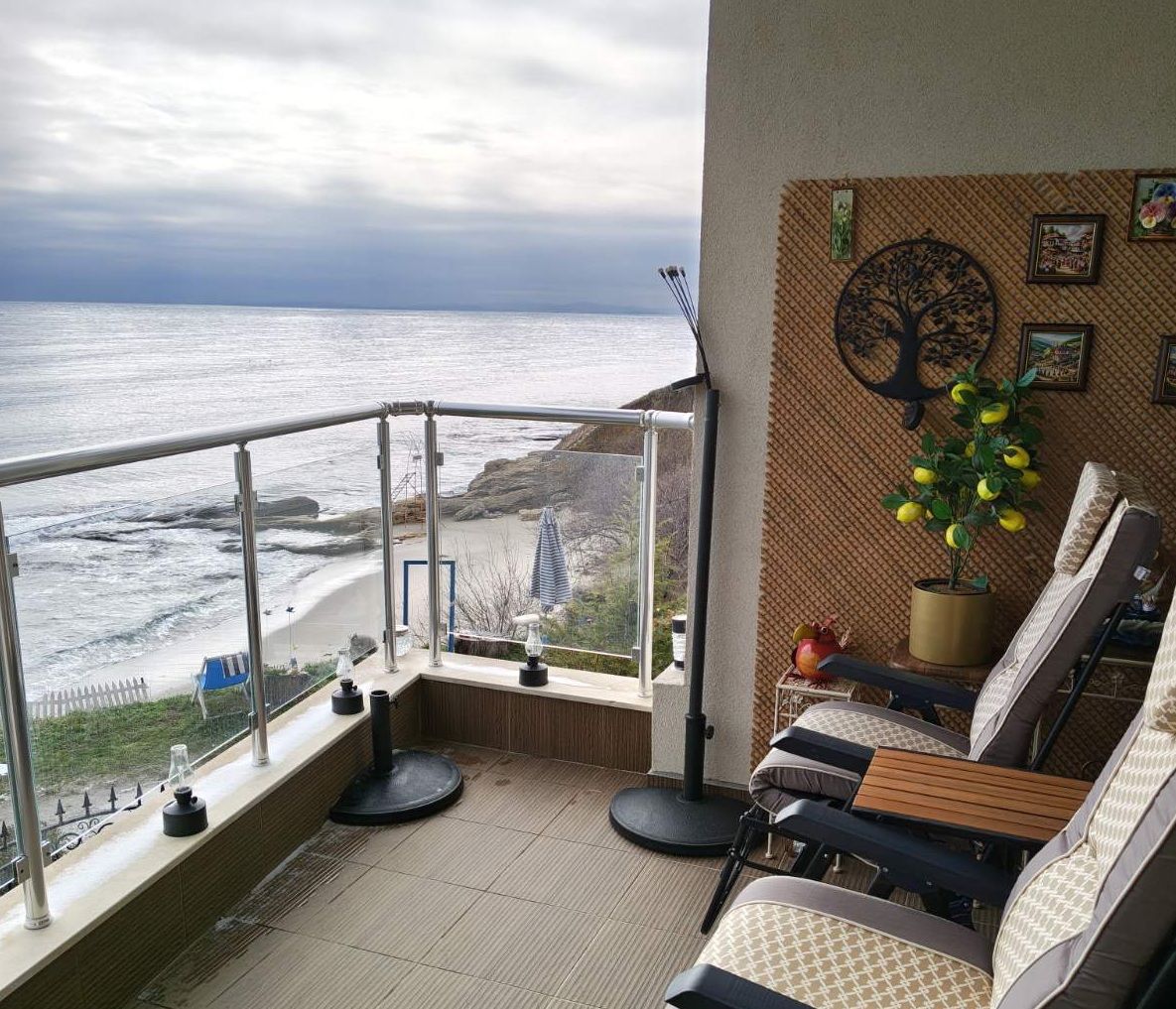 Апартамент с прекрасна гледка към морето. На терасата може да посрещате изгрева с чаша кафе в ръка.