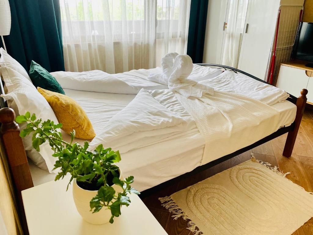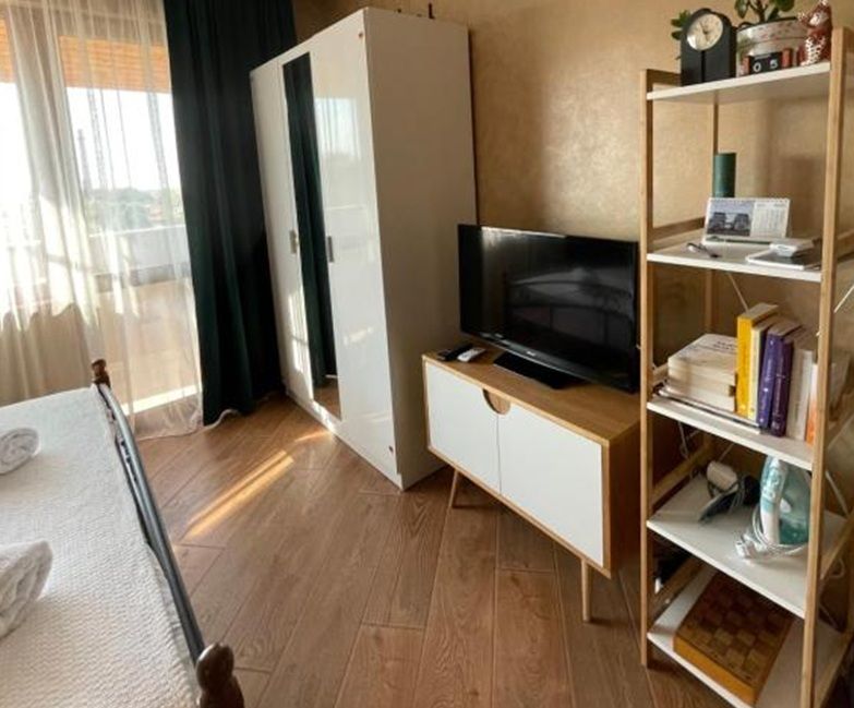 Леглото в спалнята е с размери 160/200 . Матракът е супер удобен и нов, предпазен с протектор. Защото държим само на най-доброто за вас, сме избрали снежнобяло бельо памучен сатен.