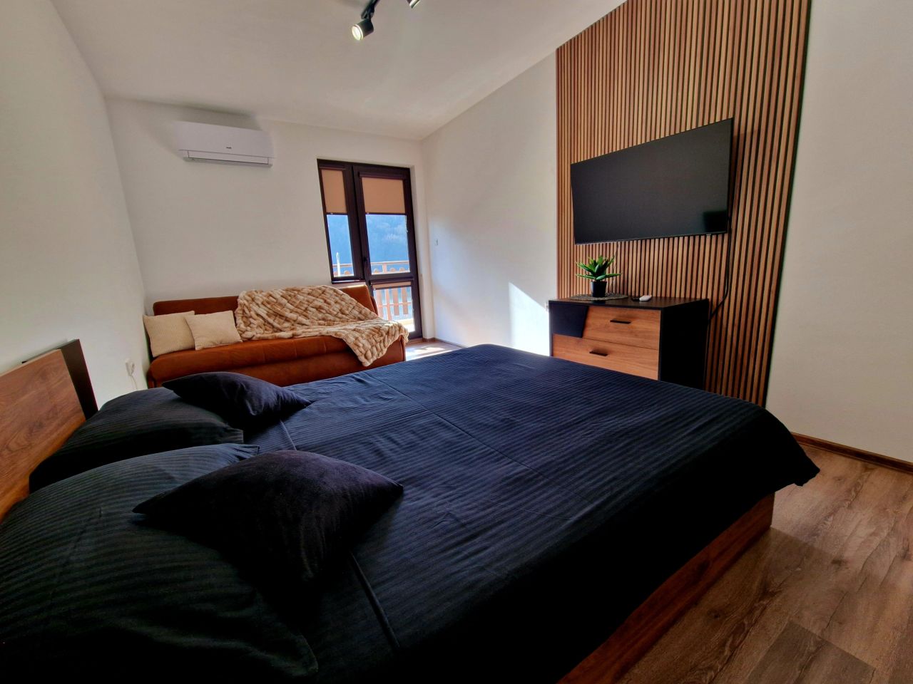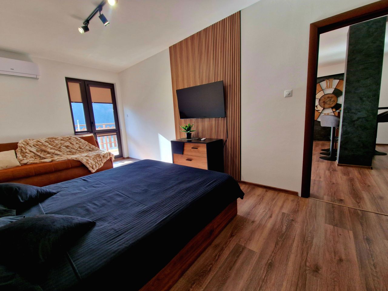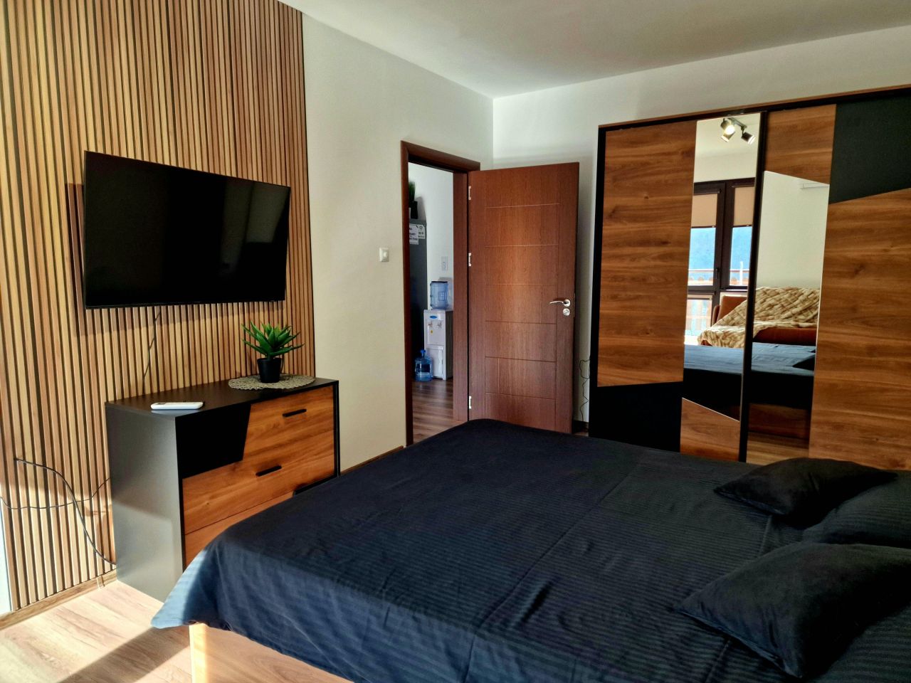 - Голяма спалня с 1 двойно легло, 1 разтегателен диван, който събира до 2-ма човека, голям гардероб и смарт телевизор 43 инча.