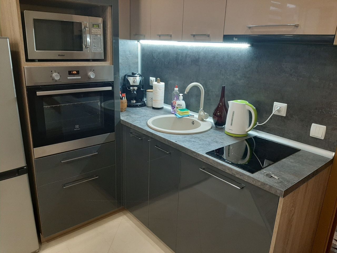 Апартаментът е оборудван с климатик, смарт телевизор, пералня, хладилник, фурна и плот за готвене, кафемашина, ел. кана, микровълнова фурна, кухненска маса и т.н.