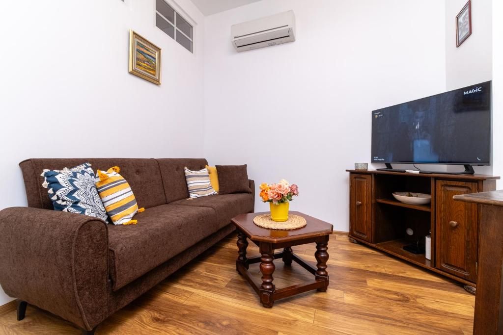 Уютната дневна зона разполага с удобен диван и телевизора с плосък екран.
