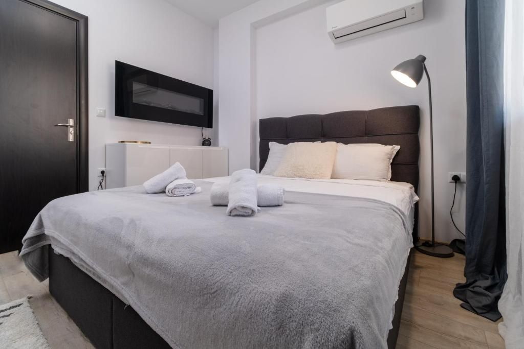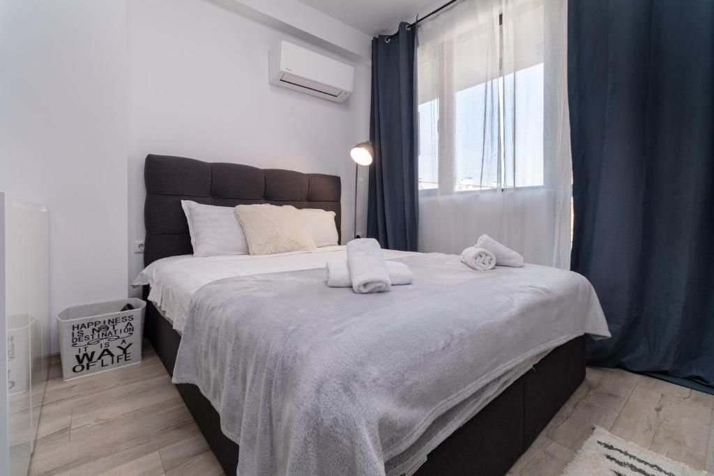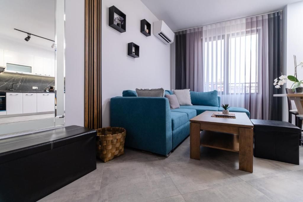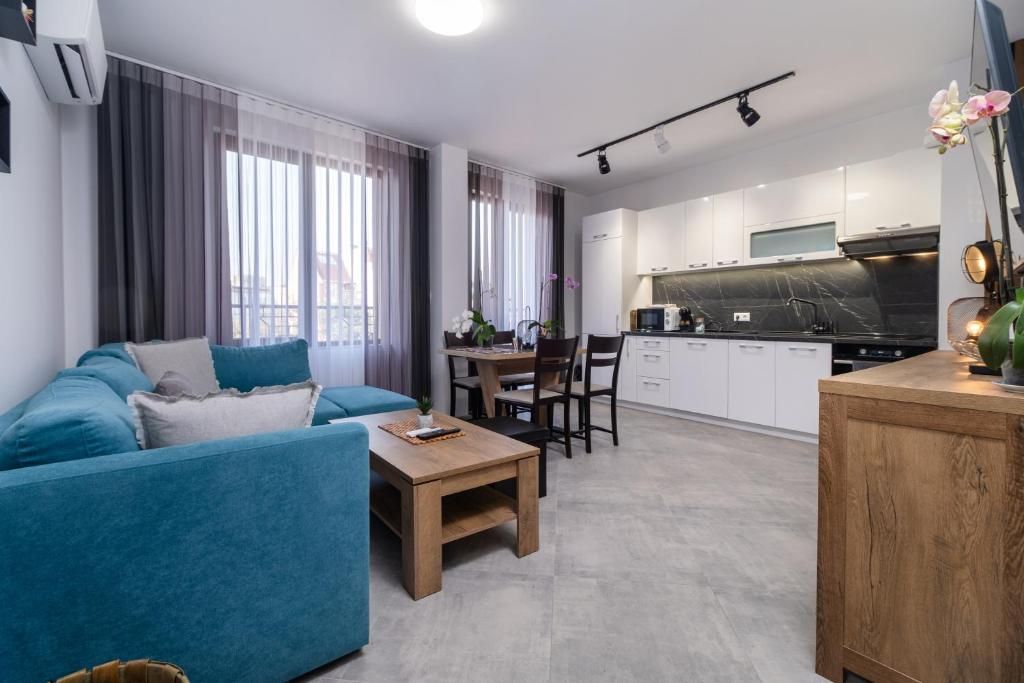 Разполага с една спалня, всекидневна с разтегателен диван, оборудван кухненски бокс, климатик, безплатен Wi Fi, тераса и безплатен частен паркинг.