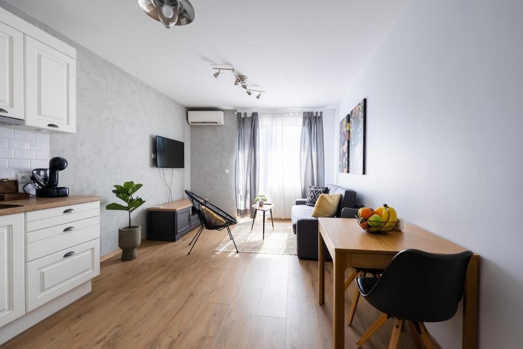 Апартаментът Шик Даунтаун (51 кв. м) се намира на 5-ти етаж в нова сграда с хубав асансьор, само на няколко крачки от главната пешеходна улица на Варна. Отличното му местоположение ви позволява да сте на минутки от всичко - плажа, нощния живот и топ ресторантите.