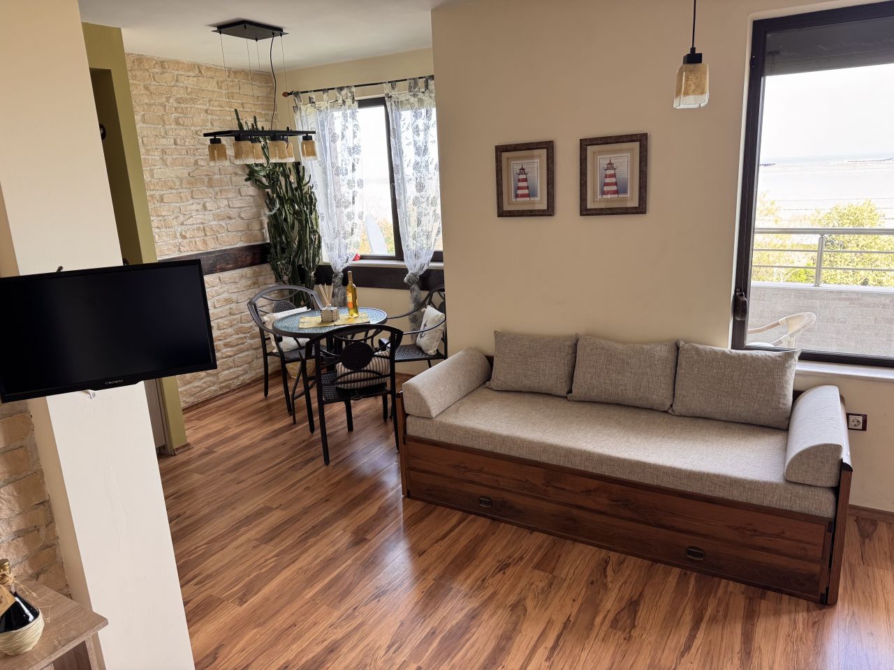 Среща с перфектното място за дистанционна работа — зашеметяващи гледки към морето, уютен комфорт и всичко необходимо за вашата продуктивност и почивка.