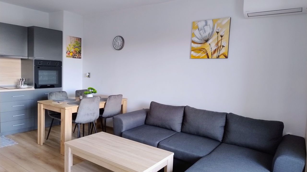 Осигурен е добре оборудван кухненски бокс с печка, керамичен плот, хладилник, миялна машина, електрическа кана, микровълнова фурна, кафе машина и кът за хранене (има посуда - всичко необходимо).