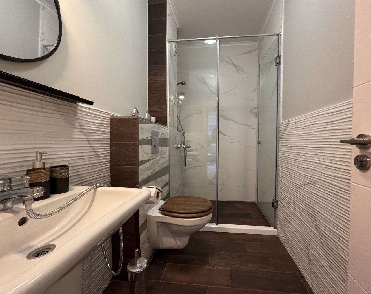 Апартаментът се намира на партерен етаж, което гарантира лесен и удобен достъп, а към него е осигурено и безплатно частно паркомясто за Ваше спокойствие.