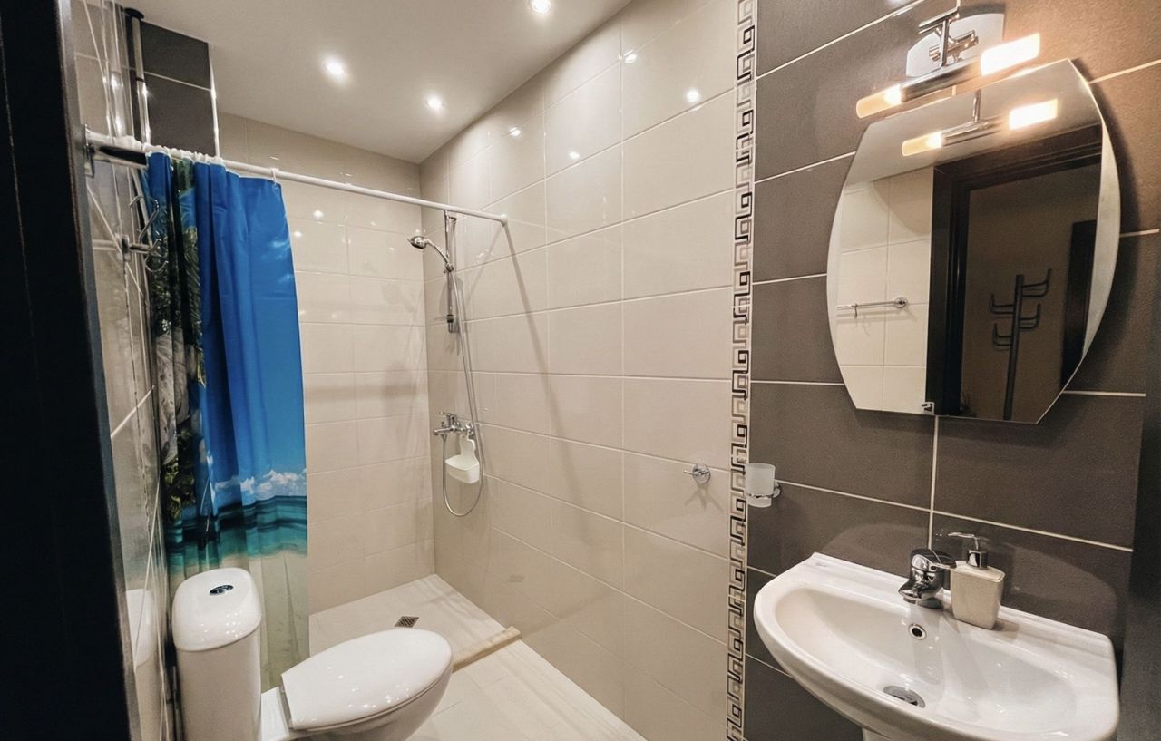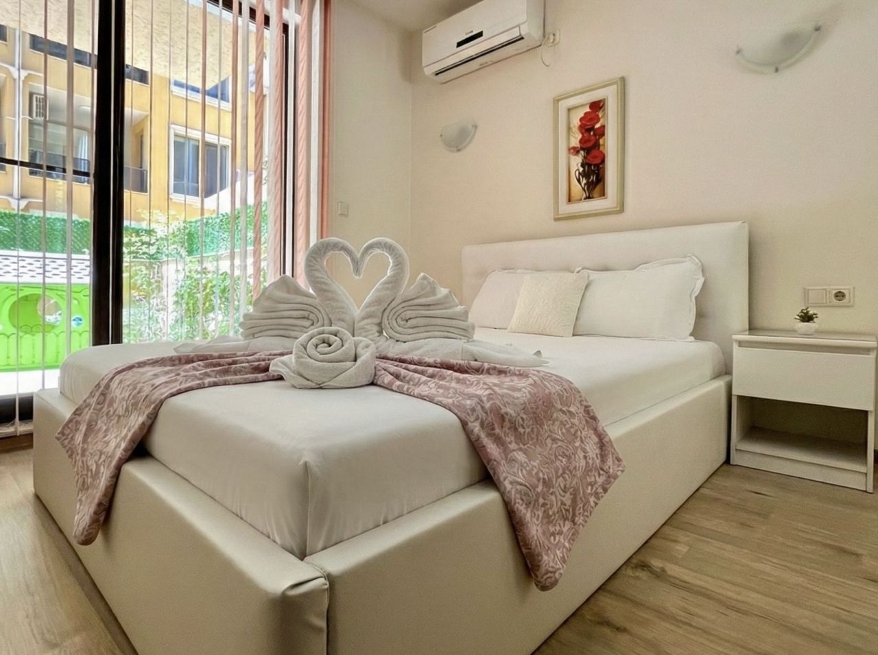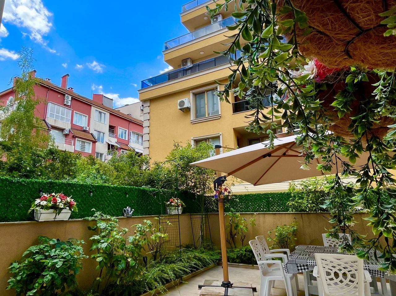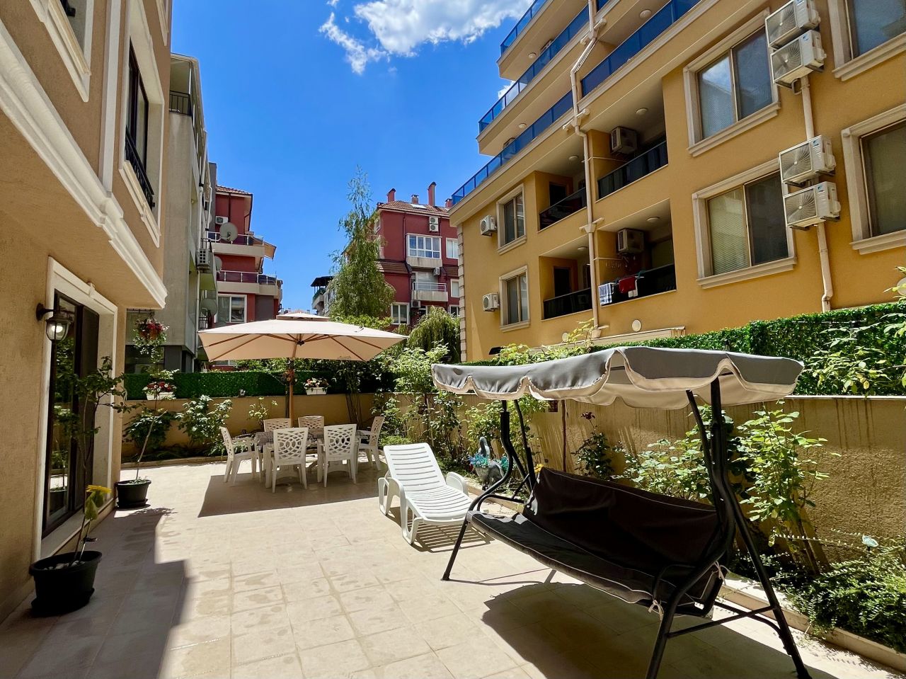 Апартаментът с 4+2 места е разположен на партера. Състои се от 2 самостоятелни спални, всекидневна с разтегателен диван и кухня. Към него има голям самостоятелен вътрешен двор с маса, чадър, столове, шезлонг, градинска люлка. Достъп към него има от всяка стая.