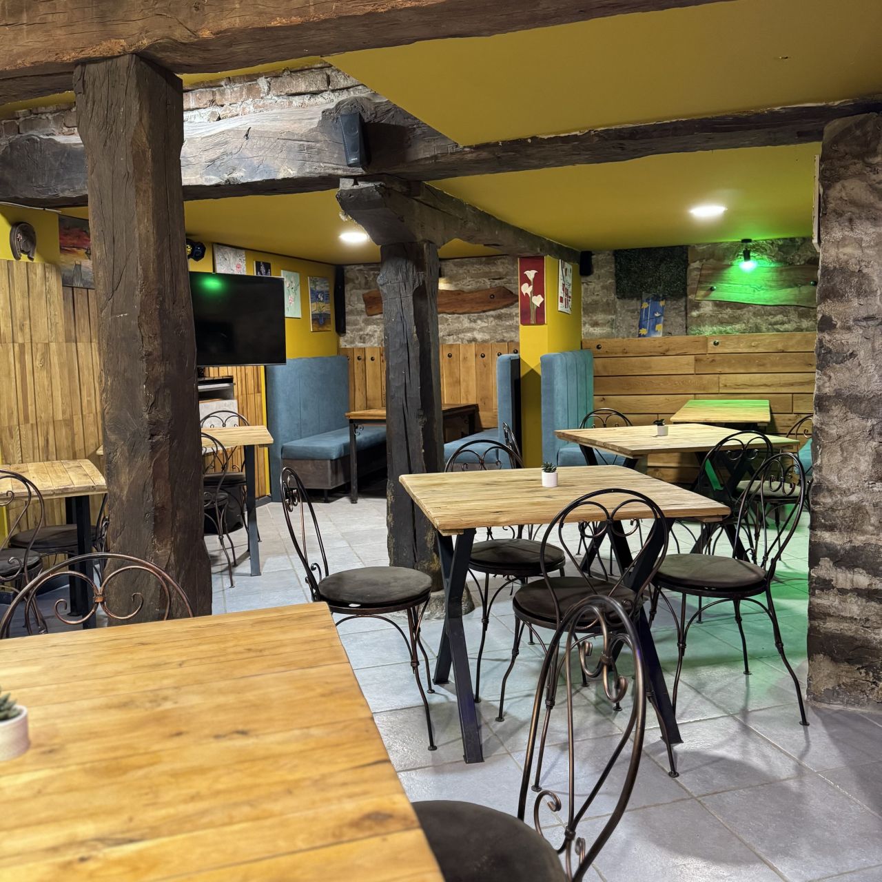 Сърцето на къщата е уютната механа – общото помещение, където спомените остават за винаги. Заедно с напълно оборудваната кухня, тя предлага перфектната обстановка за отдих и празнуване на важни моменти.