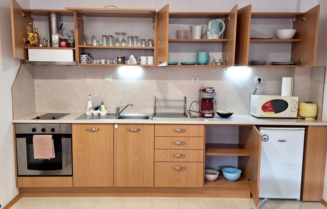 Гостите разполагат с напълно оборудвана кухня с кафе машина, микровълнова, миялна, хладилник и всички необходими принадлежности за продължителен престой. Осигурени са спално бельо, хавлии и пособия за гладене. Отоплението е с конвектори, а за по-уютна атмосфера – и функционираща камина на дърва. Разполагате и с допълнителни завивки и възглавница. Всеки апартамент има плоскоекранен телевизор с кабелна ТВ и бърз Wi-Fi интернет.