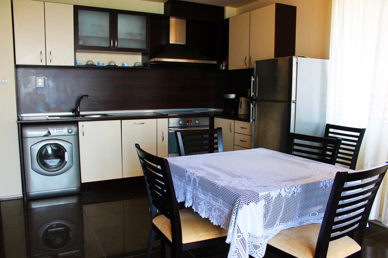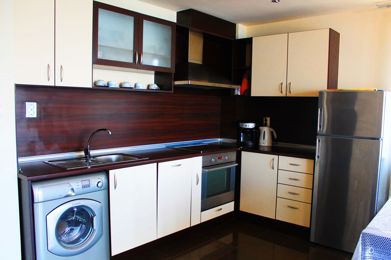 Тристайните апартаменти са с 2 спални, тоалетна и баня. Напълно обзаведен хол и кухня, тераса с изглед към морето, от която се открива невероятна гледка към пристанището, Слънчев бряг и Несебър.
