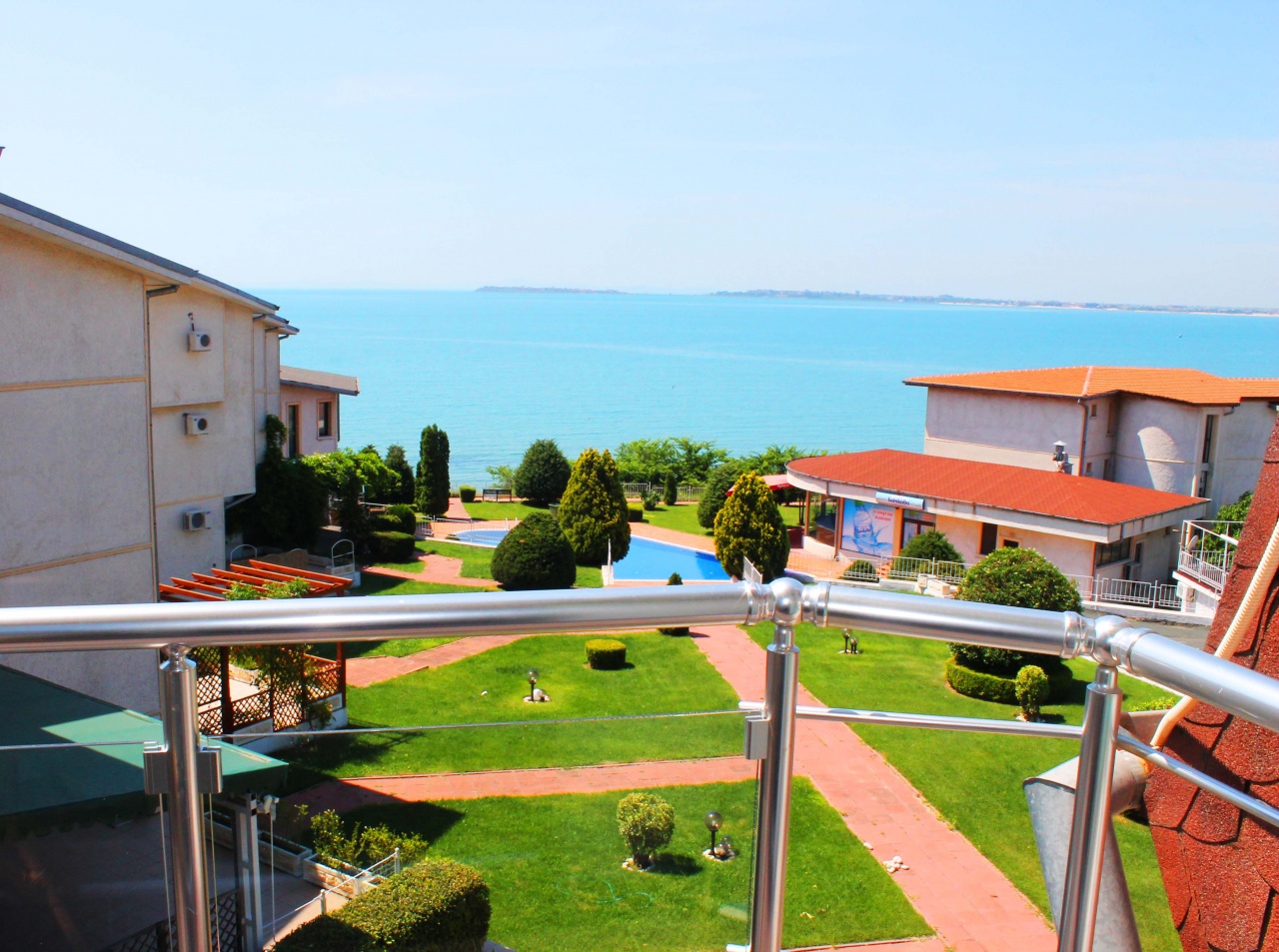 Комплексът се намира на първа линия. Разполага с голяма територия, на която се намира ресторант, басейн и охраняем паркинг.