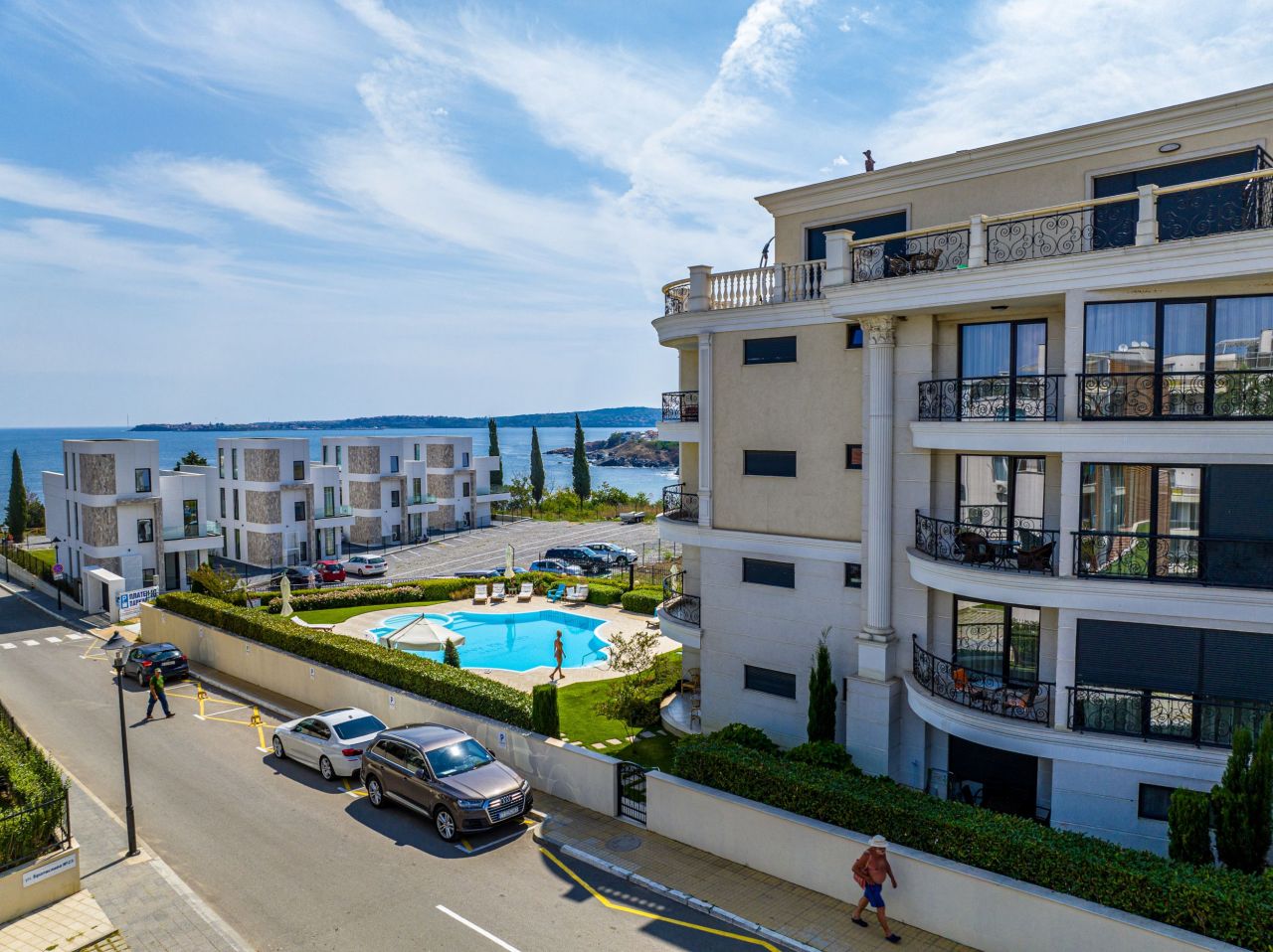 Предлагаме модерно обзаведени студиa и двустайни апартаменти под наем с панорамна гледка към морето. Жилищата са напълно оборудвани с електроуреди, посуда и прибори, осигуряващи възможност за самостоятелно приготвяне на храна и пълна независимост по време на престоя. От просторните тераси се разкрива пленителна гледка към лазурносиньото море и остров Св. Иван – перфектният фон за сутрешното кафе или вечерния релакс.
