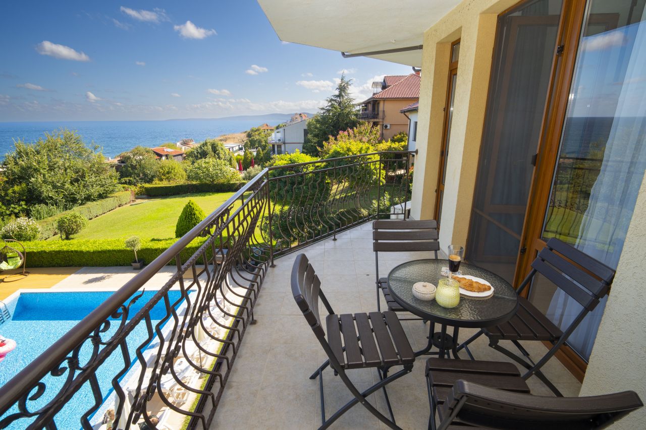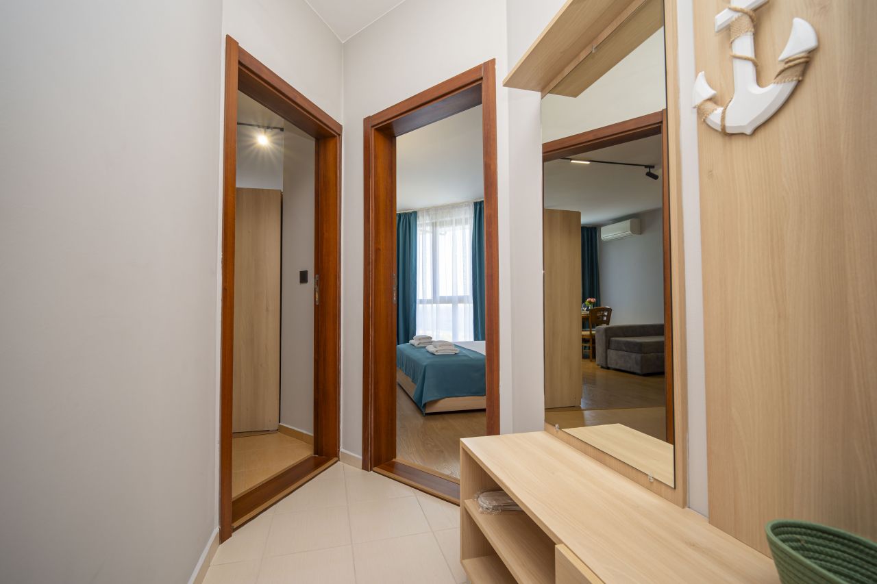 Апартаментите се намират в самостоятелна 4-ри етажна сграда. Всички апартаменти имат тераси с гледка към залива Свети Стефан.
