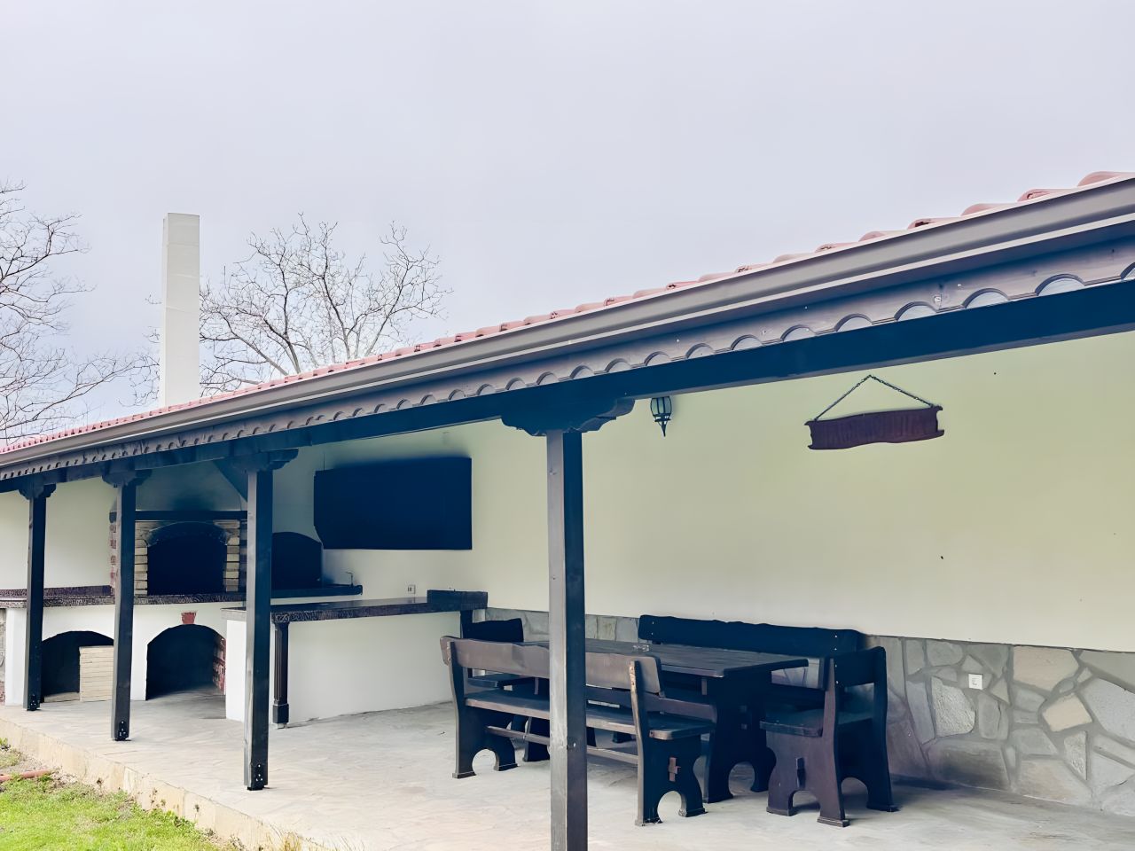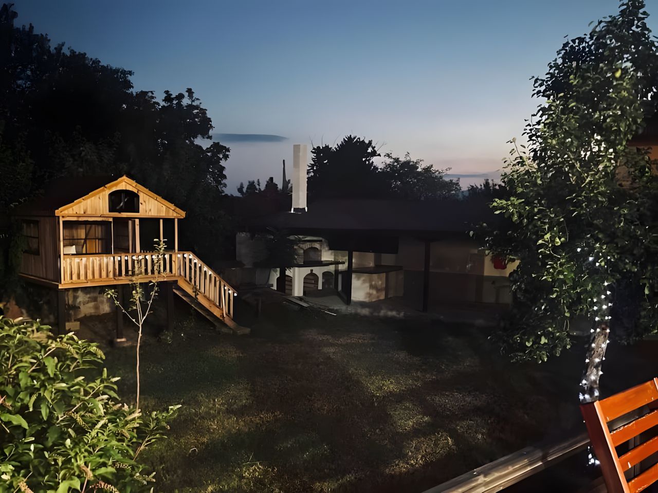 Къщата разполага с приятен южен двор с къщичка в дърветата за деца. Външната механа е оборудвана с голямо барбекю / камина и трапезна маса с 10 места.