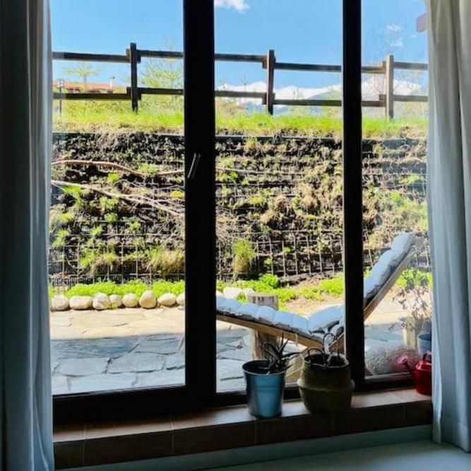 - голяма спалня с достъп до слънчева градина с кът за отдих;