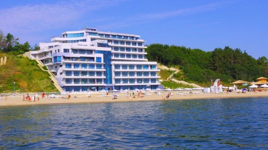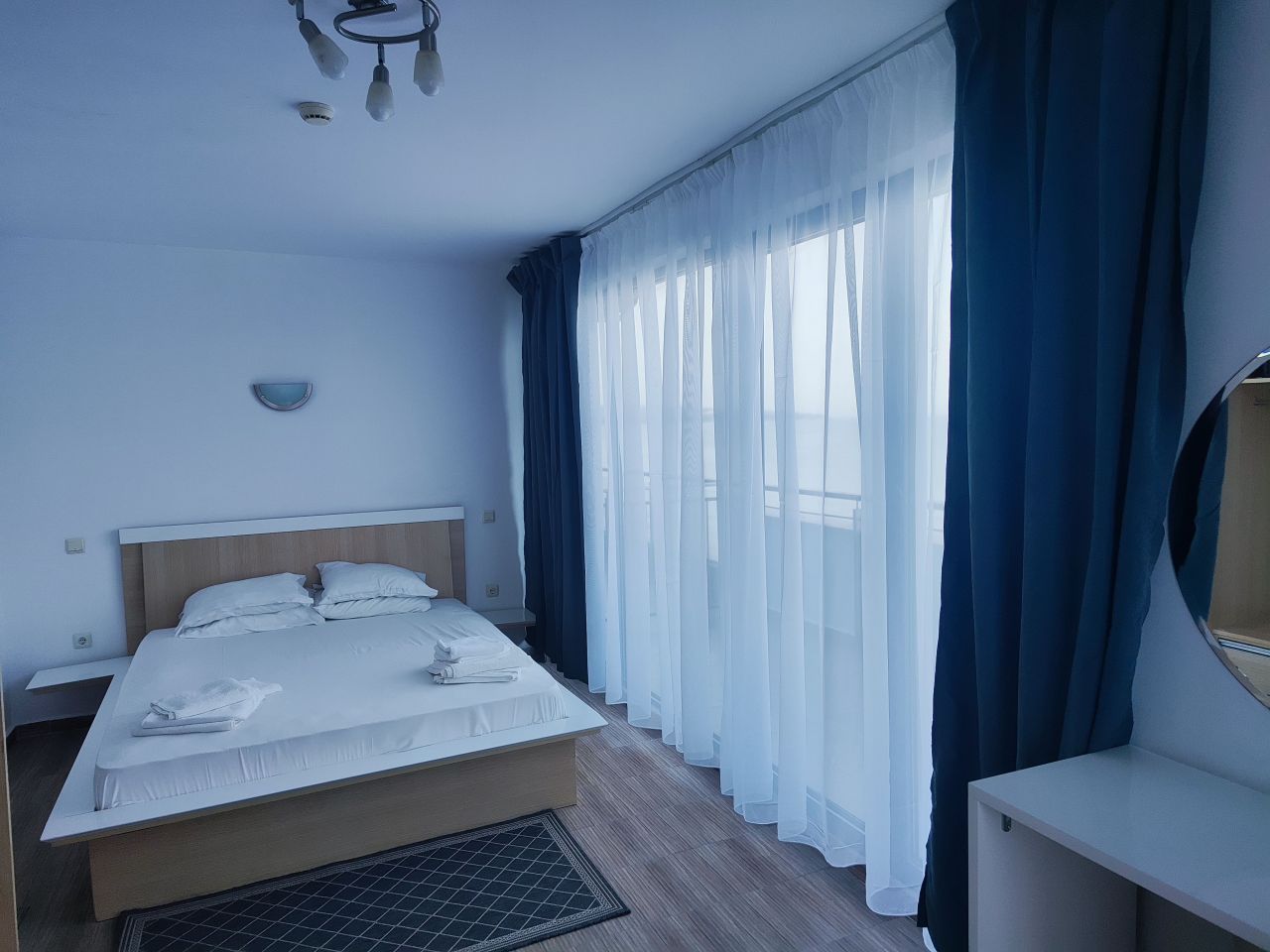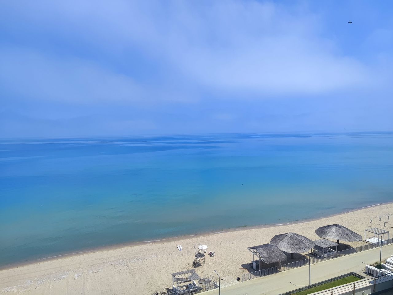Апартамент Аврора Вю е на първа линия на Южен плаж Обзор, с прекрасна фронтална гледка към плажа и морето на девети етаж в комплекс Аврора.
