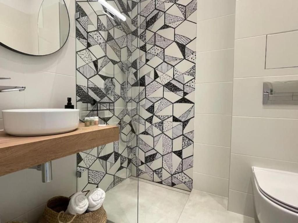 - модерна баня с кърпи и безплатни тоалетни принадлежности;