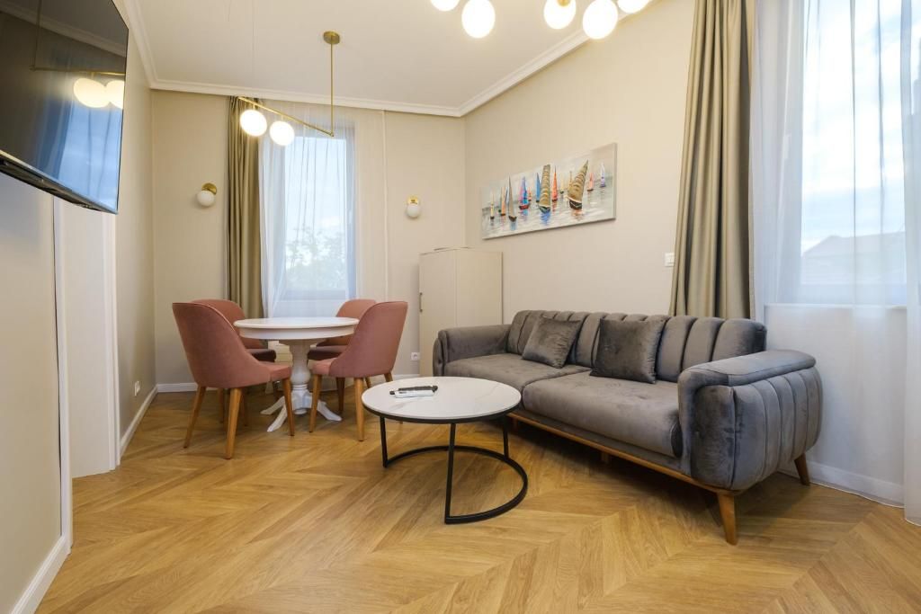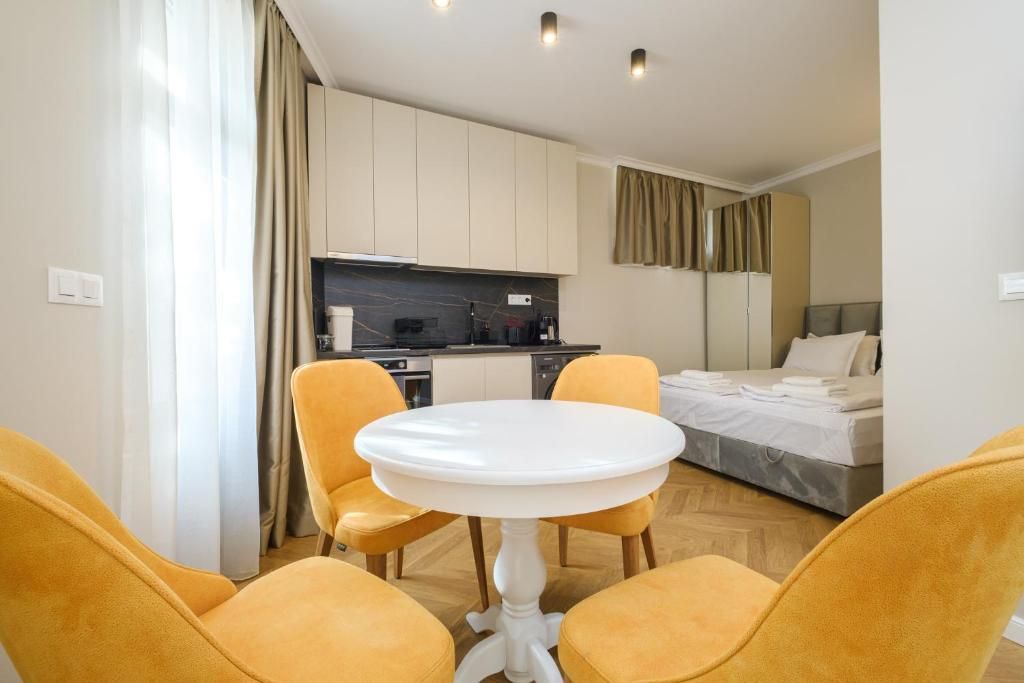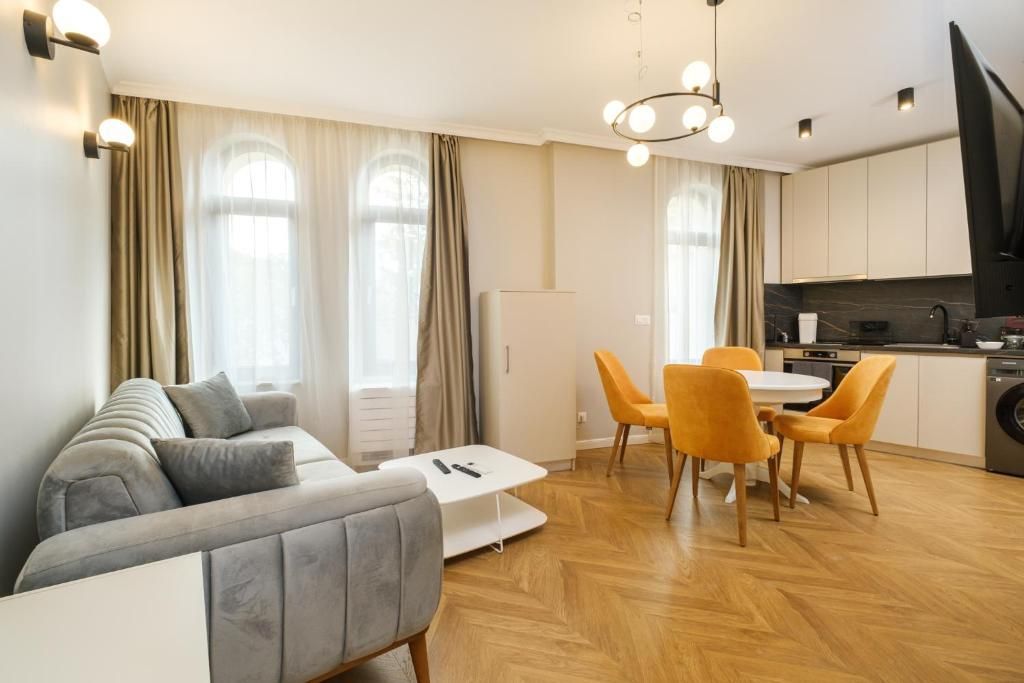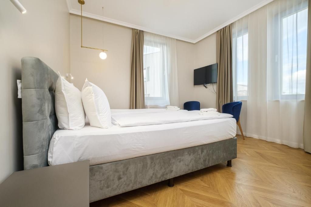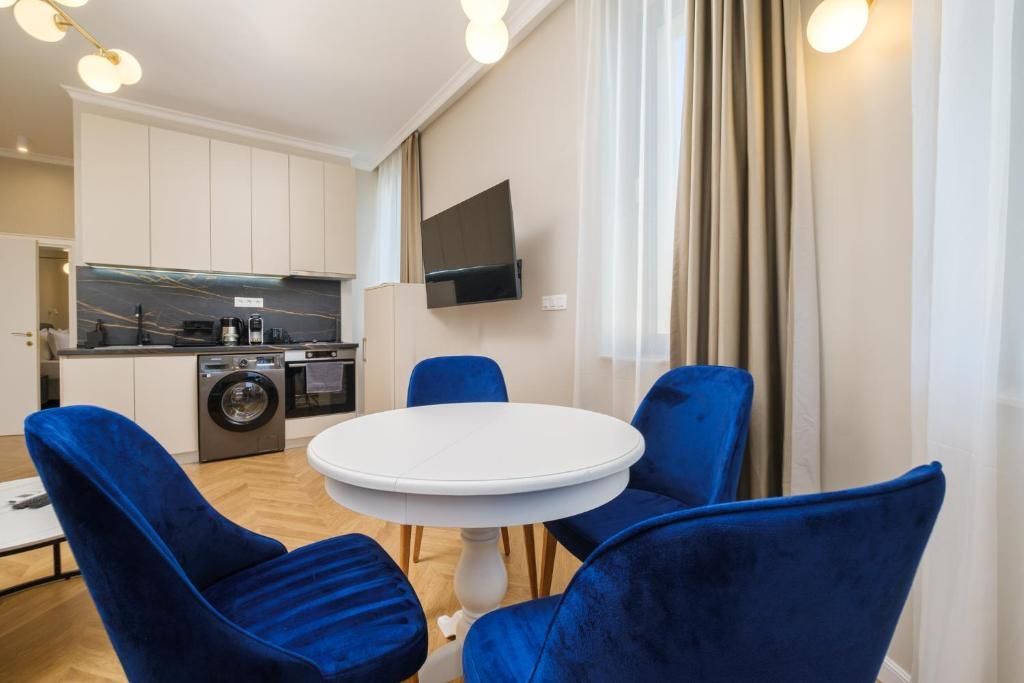 Интериорът, проектиран с прецизно внимание към всеки детайл, съчетава в себе си модерни удобства, елегантна обстановка и домашен уют. Всеки апартамент излъчва изтънченост и разполага с луксозни мебели и спокойна атмосфера.