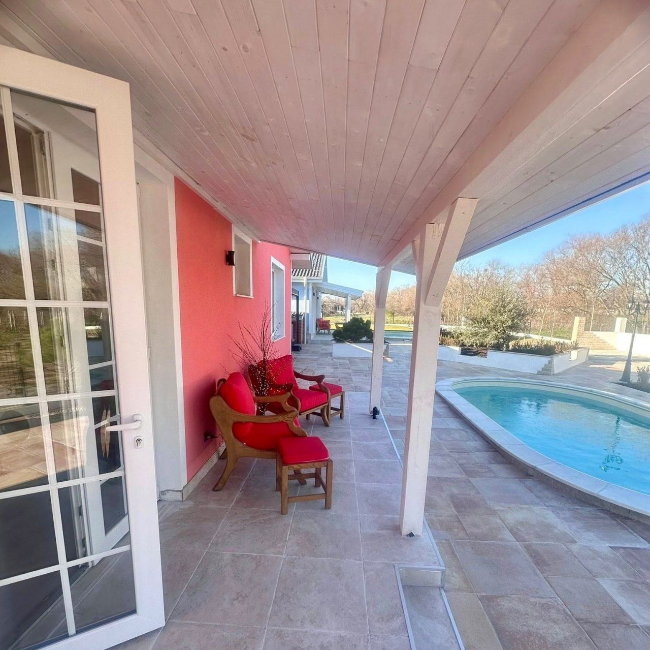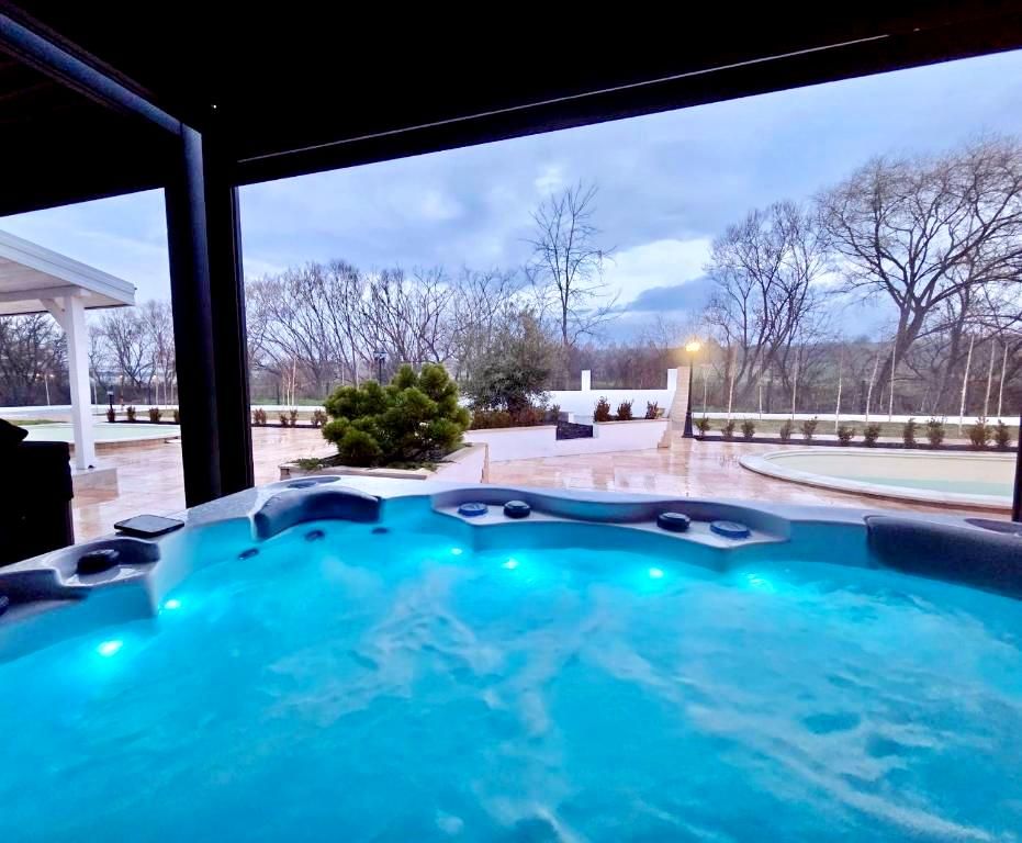 Ексклузивно: За още по-индивидуално преживяване всяка вила разполага със самостоятелни сезонен басейн и целогодишно джакузи от висок клас с 6 места. Насладете се на хидромасаж под открито небе или изберете опцията с подвижна пергола!