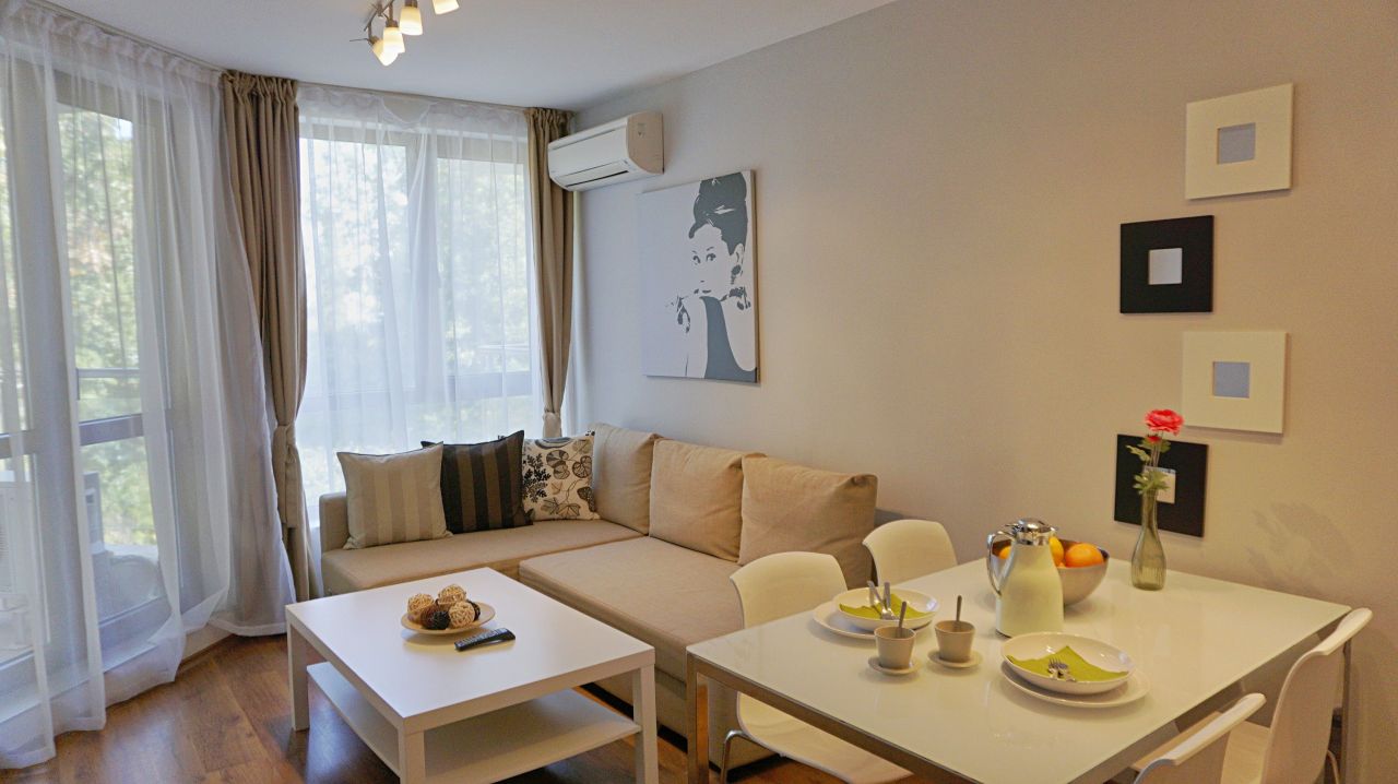 Апартаментът се предоставя почистен и подготвен за настаняване. В цената са включени всички консумативи по време на престоя – електричество, вода, интернет, климатик и кабелна телевизия. Минималният престой е 2 нощувки.