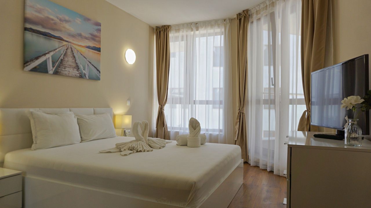 Апартаментът се предоставя почистен и напълно подготвен за настаняване. В цената са включени всички консумативи по време на престоя – електричество, вода, интернет, климатик и кабелна телевизия. Минималният престой е 2 нощувки.
