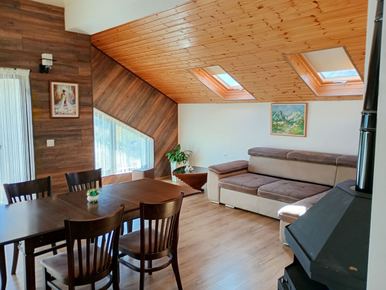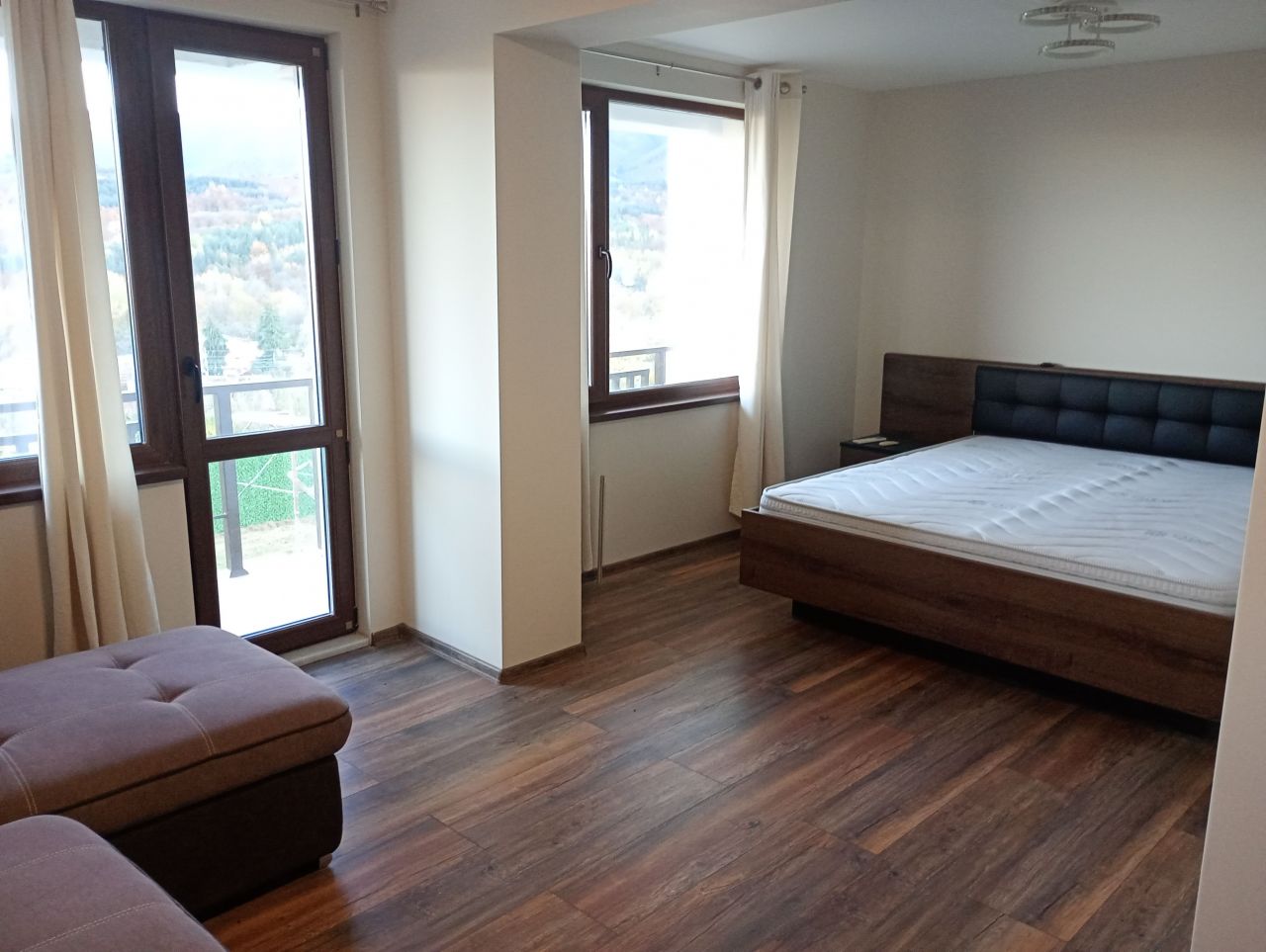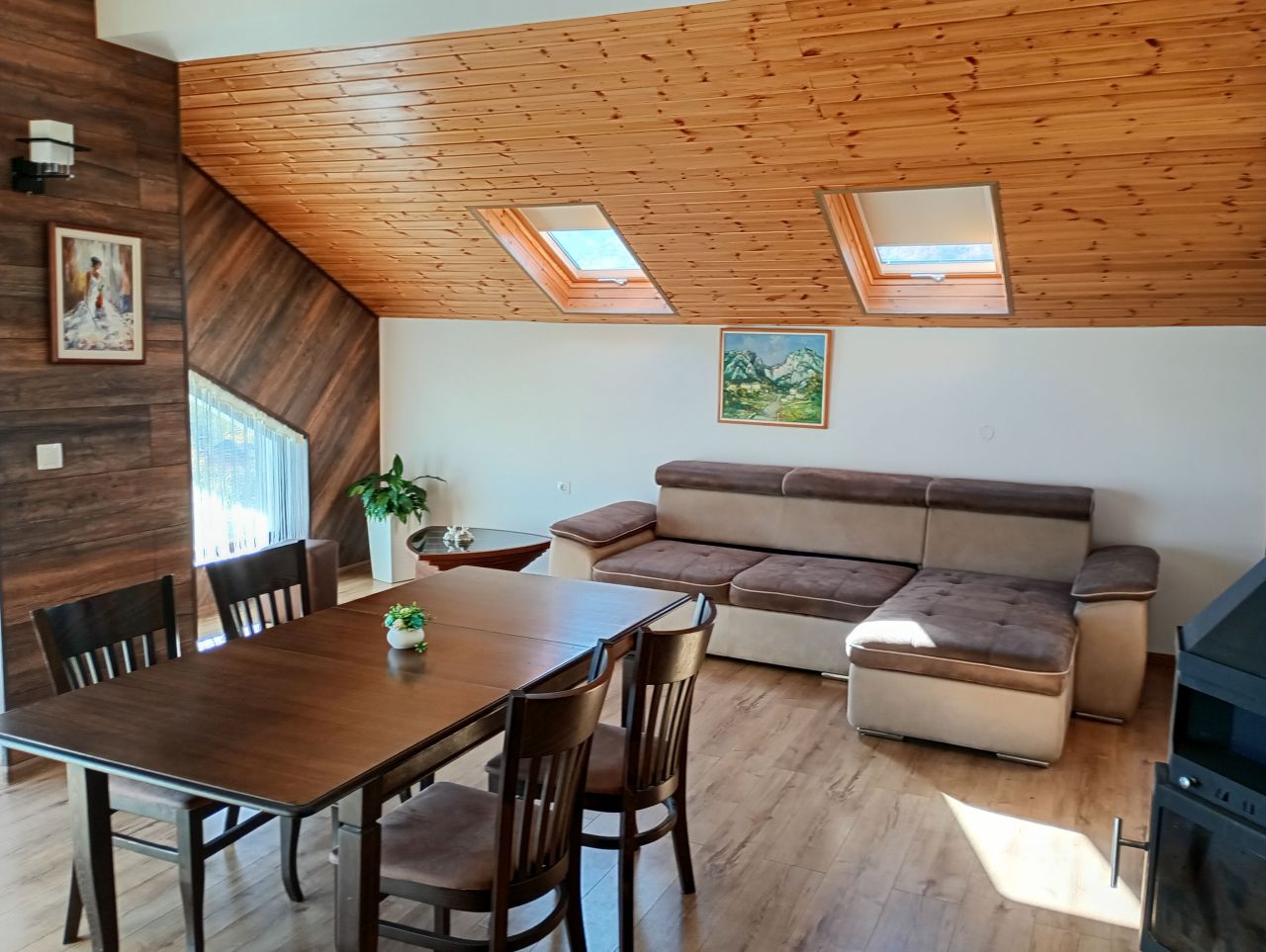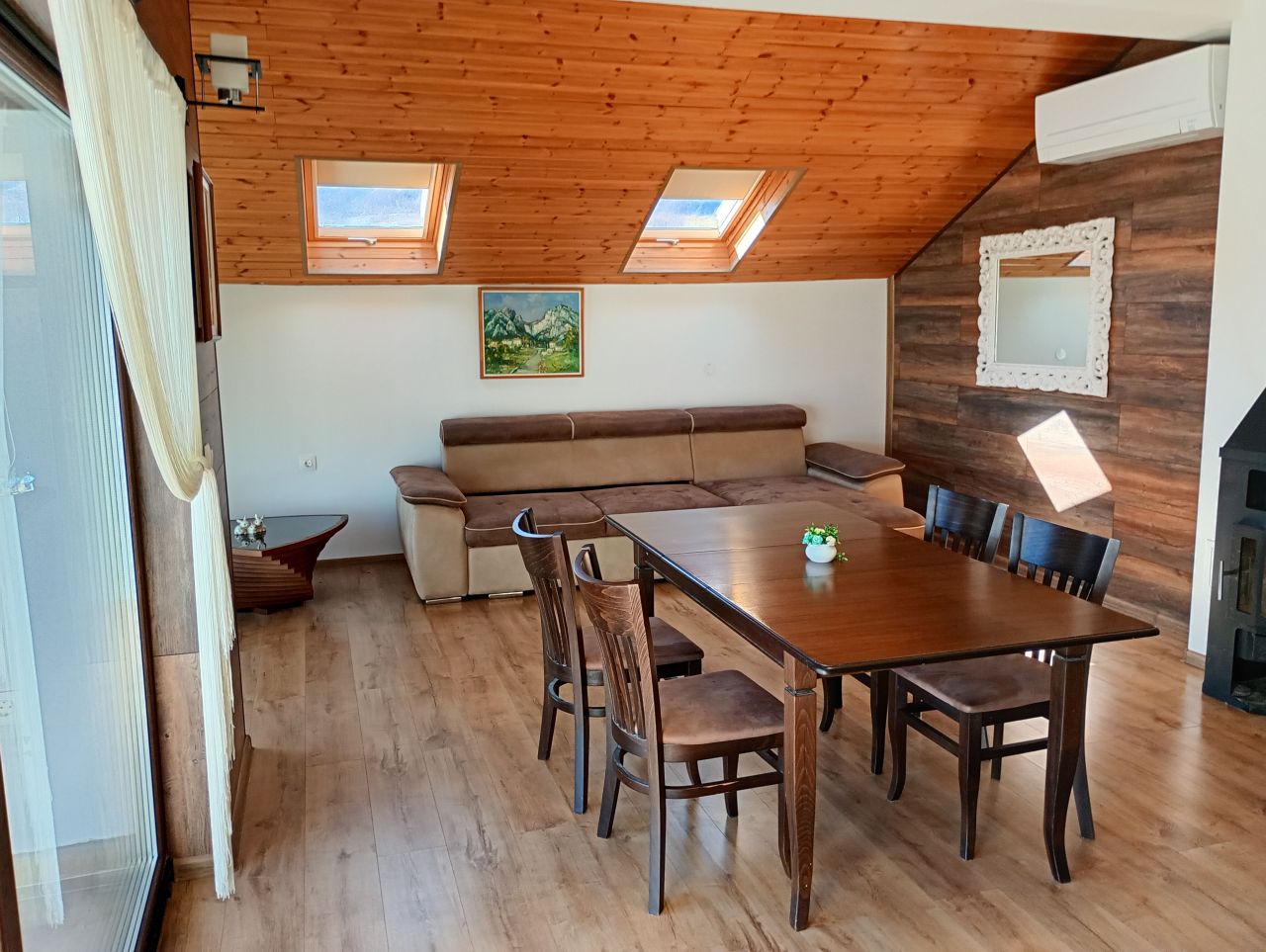Третият етаж е обособен като отделен апартамент с 2 стаи със спални, кухня, голям хол-трапезария с камина на дърва, TV и разтегателен диван; панорамни прозорци към терасата, баня и WC (не е подходящ за хора с малки деца заради ниското разположение на прозорците в спалните и хола).