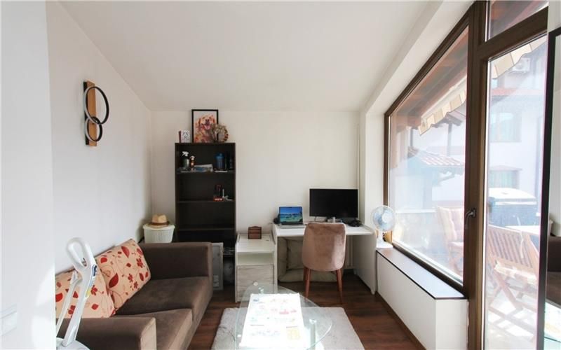 С комфортно двойно легло, два гардероба и отделна зона за работа от вкъщи. Допълнително удобство е канапето с прекрасна гледка към планината – перфектно място за почивка или четене.