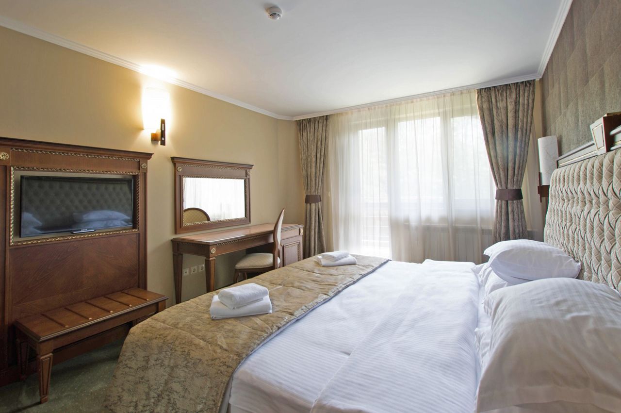 Всички стаи и апартаменти са със самостоятелен санитарен възел, отопление и с изглед към заобикалящата гора и красивата градина на хотела.