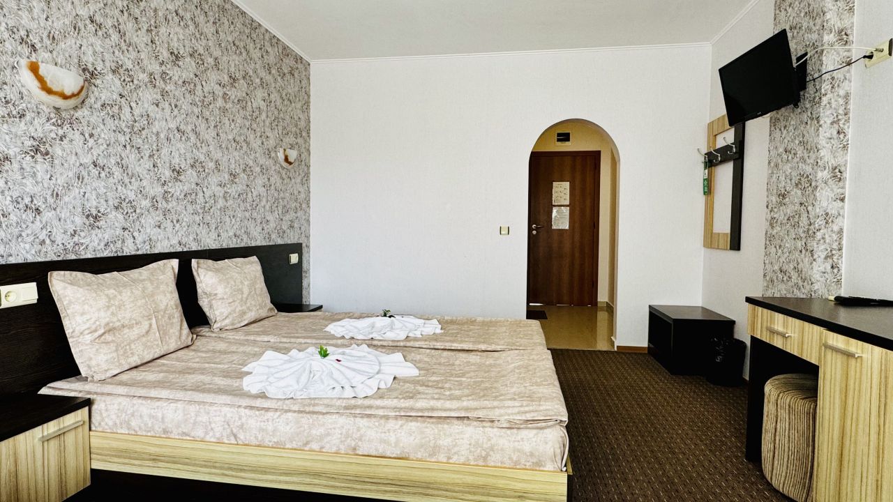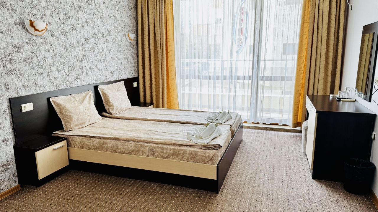 Хотелът се състои от две сгради, разположени една до друга, и предлага настаняване в двойни, тройни стаи и едноспални апартаменти. Всички помещения са оборудвани с индивидуална климатизация и разполагат с тераса и собствен санитарен възел.
