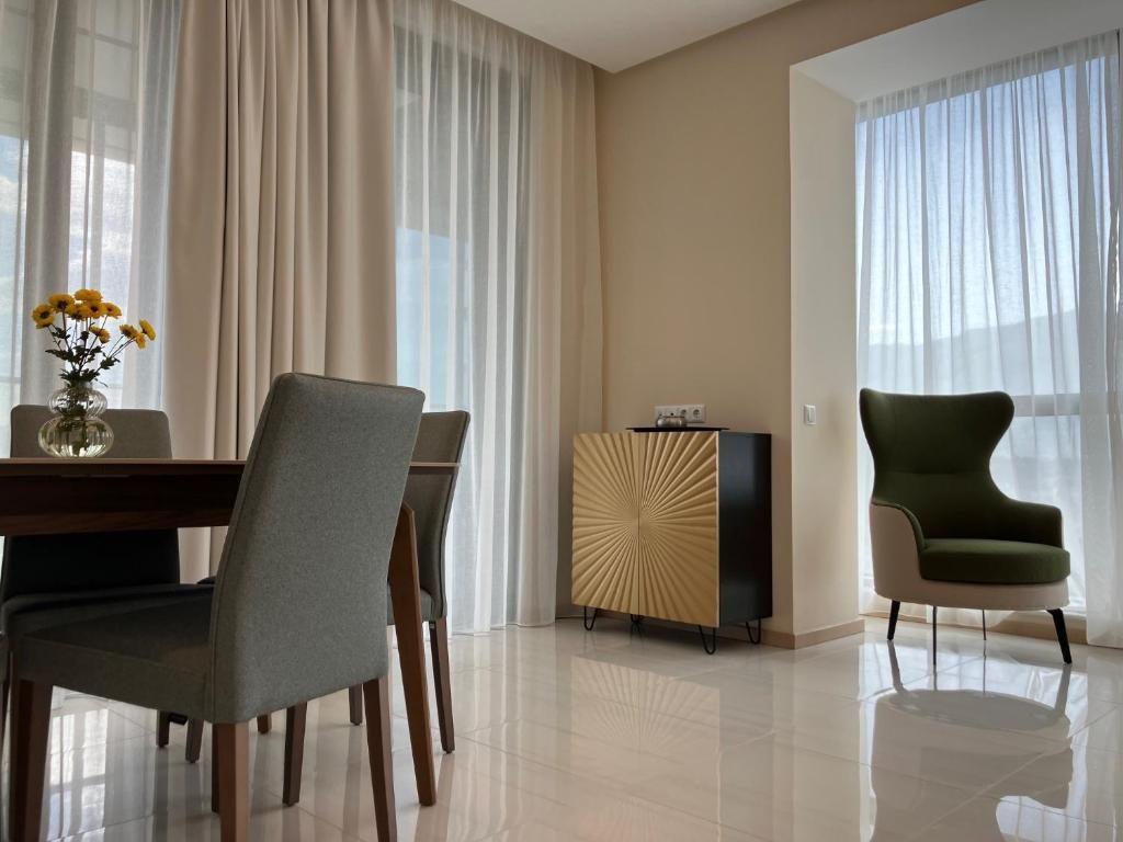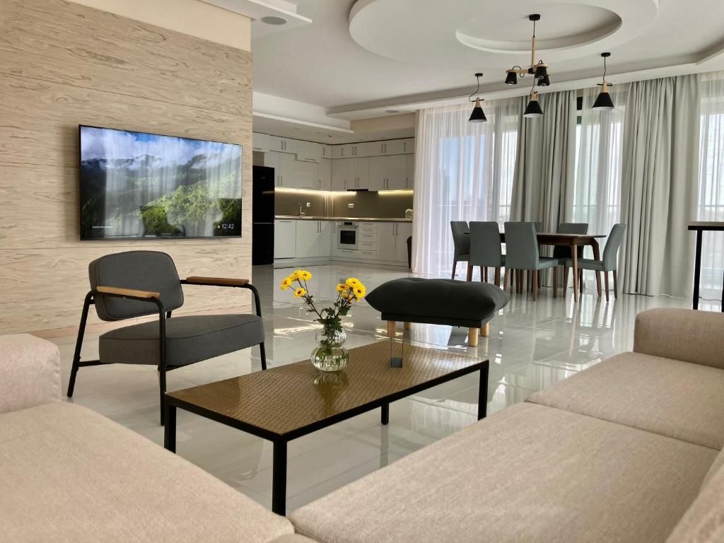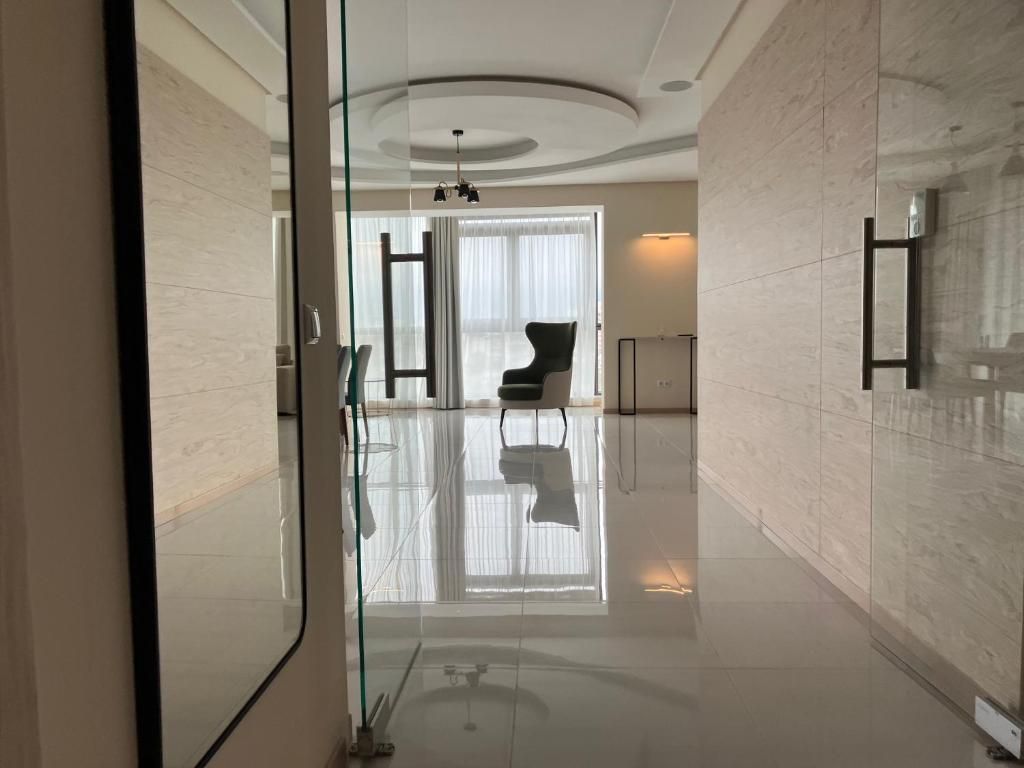 Апартаментът предлага изключителна панорамна гледка, изобилие от пространство и естествена светлина, безплатен подземен паркинг, 24-часова охрана. Ние осигуряваме всичко необходимо за комфортен престой, включително напълно оборудвана кухня, отделно перално помещение, 75-инчов телевизор и брилянтна безжична озвучителна система.