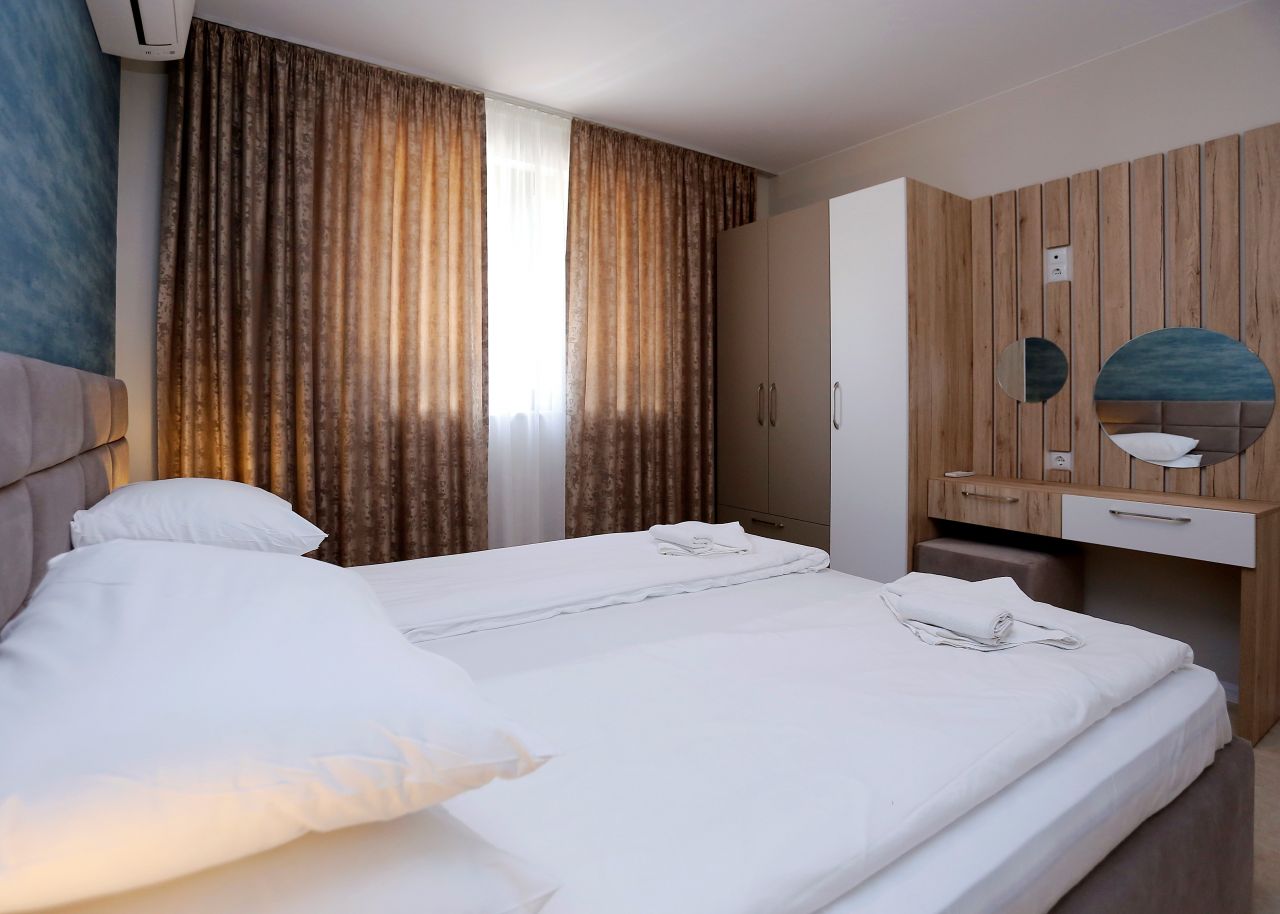 - апартамент с две спални - могат да се настанят до пет души. Дневната е оборудвана с кухненска ниша и кът с разтегателен диван, има тераса;