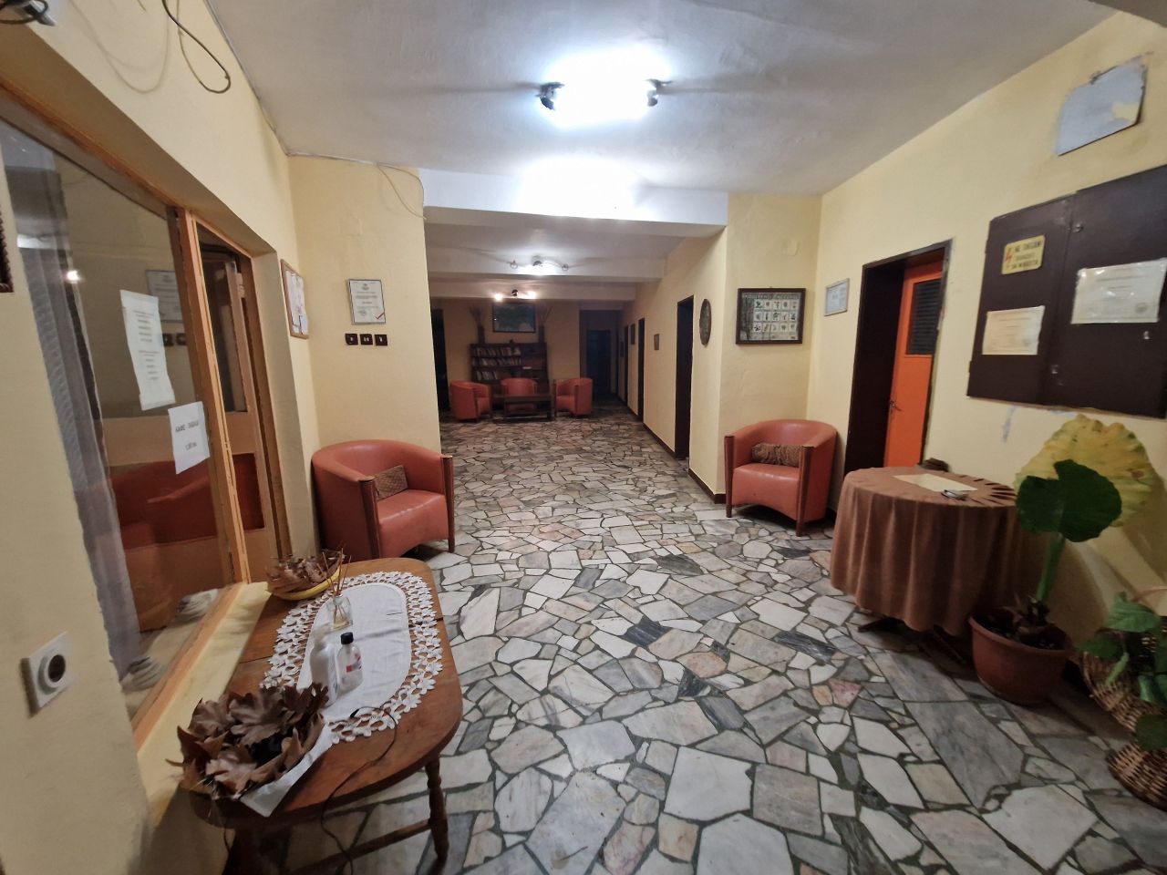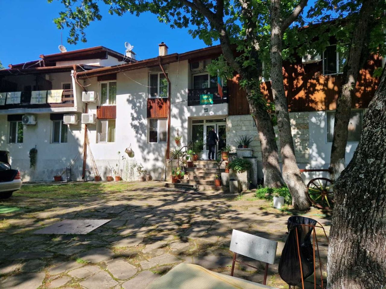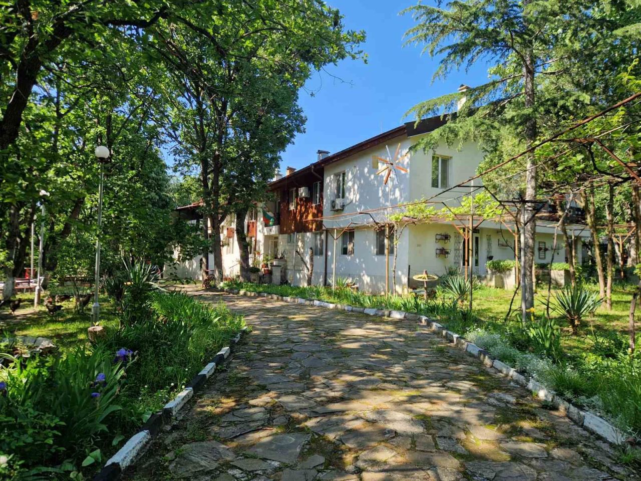 Състои се от два етажа в стар стил, предлага светли и уютни 16 двойни, 9 тройни стаи. Всяко от помещенията е оборудвано с хладилник, телевизор и самостоятелна баня с тоалетна, климатици.