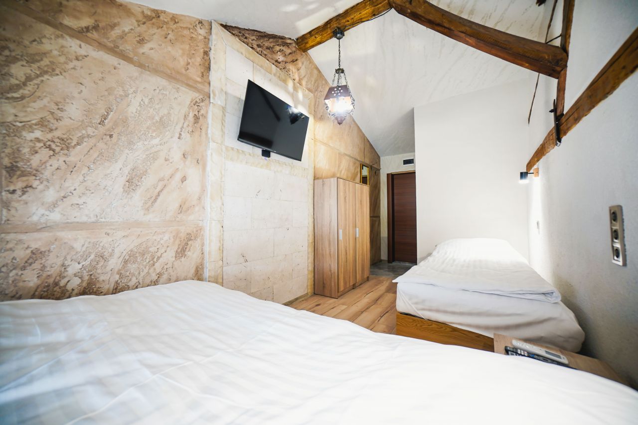 На разположение на гостите са комфортно обзаведени стаи, всяка със собствен санитарен възел, климатик, Smart TV, кабелна телевизия и безплатен Wi-Fi. Интериорът съчетава функционалност и уют, осигурявайки комфорт както за кратки посещения, така и за по-дълъг престой.