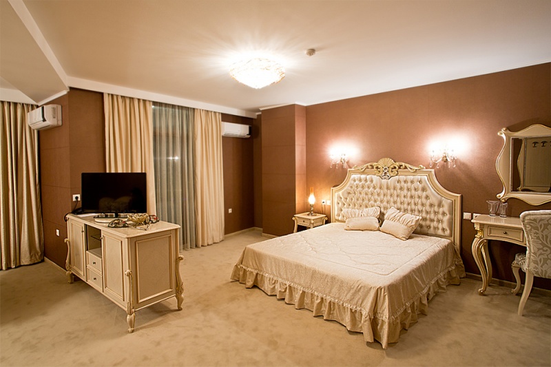 Всички стаи и апартаменти са олицетворение на лукс, романтика и аристократизъм. Интериора е изработен с изключително много старание и мания към детайлите, за да постигнем разкошна визия, придаваща блясък на престоя ви в Казанлък.