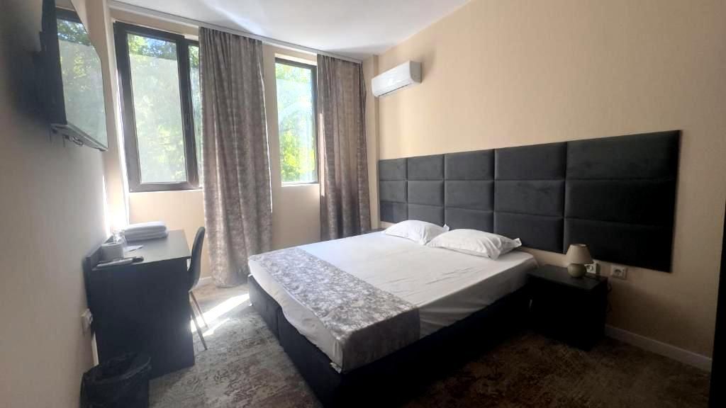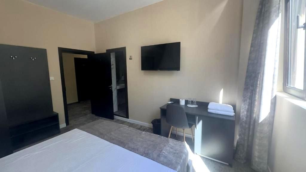 На разположение на нашите гости са: 5 двойни стаи, 6 тройни стаи, 2 четворни стаи. Всяка от тях е оборудвана с климатик, телевизор, хладилник и сешоар, за да Ви осигури максимален комфорт по време на престоя. При нужда предлагаме безплатно детско легло за деца до 7-годишна възраст – включено в цената на нощувката. Осигурени са и 3 самостоятелни гаража за удобство на гостите с автомобили.
