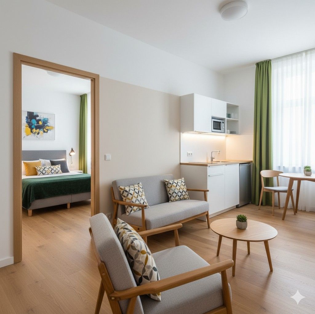 - Двустаен апартамент - спалня с двойно легло и хол с кухненски бокс.