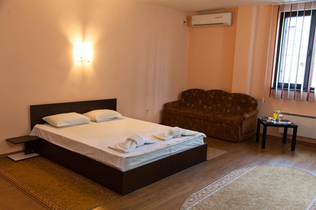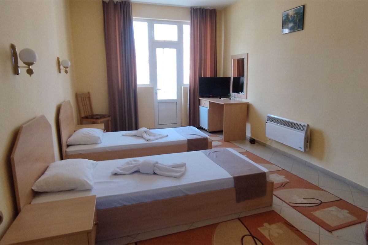 Хотелът предлага настаняване в 11 стаи с две отделни легла с възможност за единично настаняване; 2 просторни стаи с двойно легло и разтегателен диван и 1 апартамент с двойно легло и разтегателен диван. Част от стаите разполагат с тераса, откъдето можете да се насладите на прекрасно слънчево изложение и гледка към главната улица на града.
