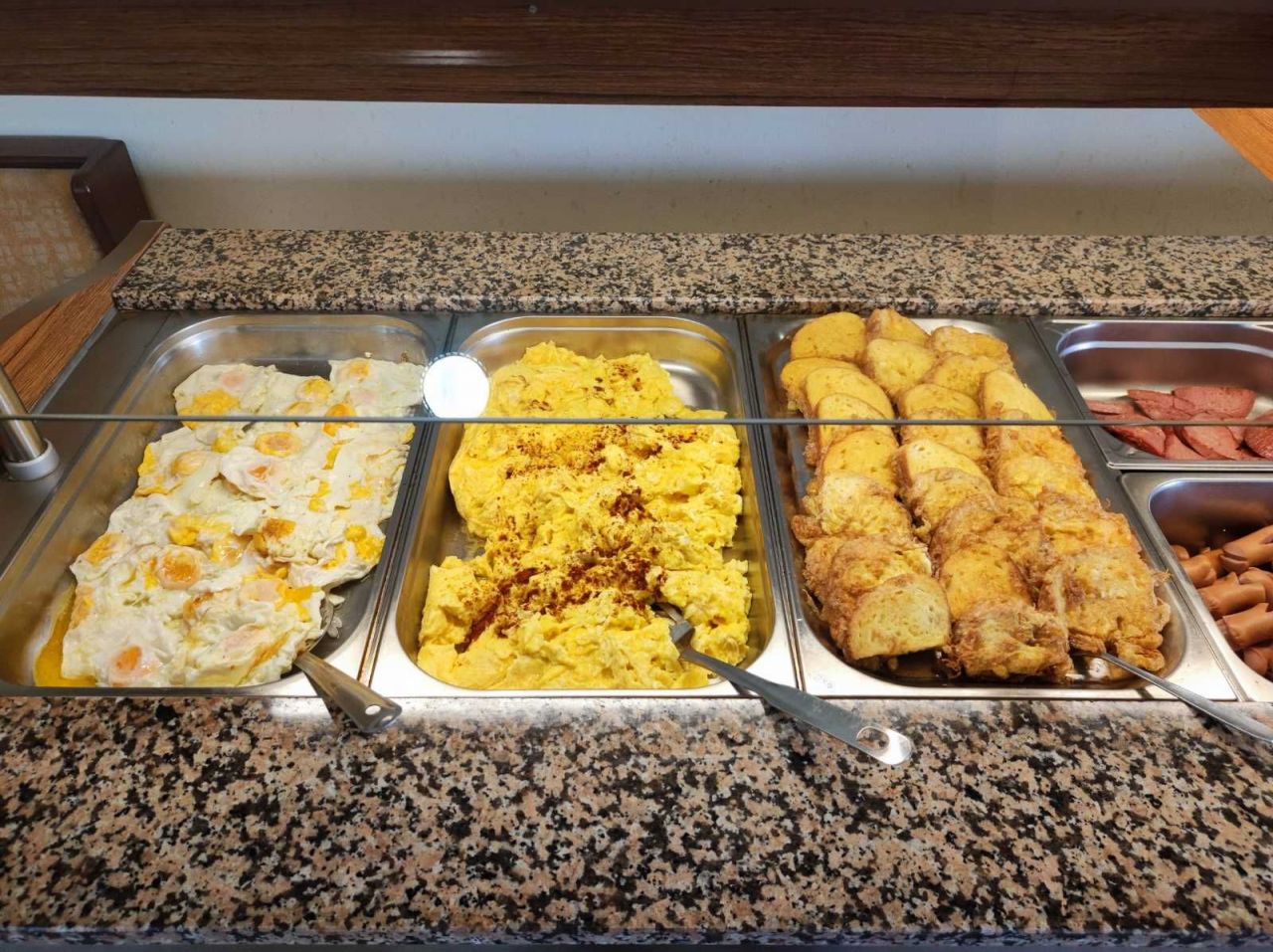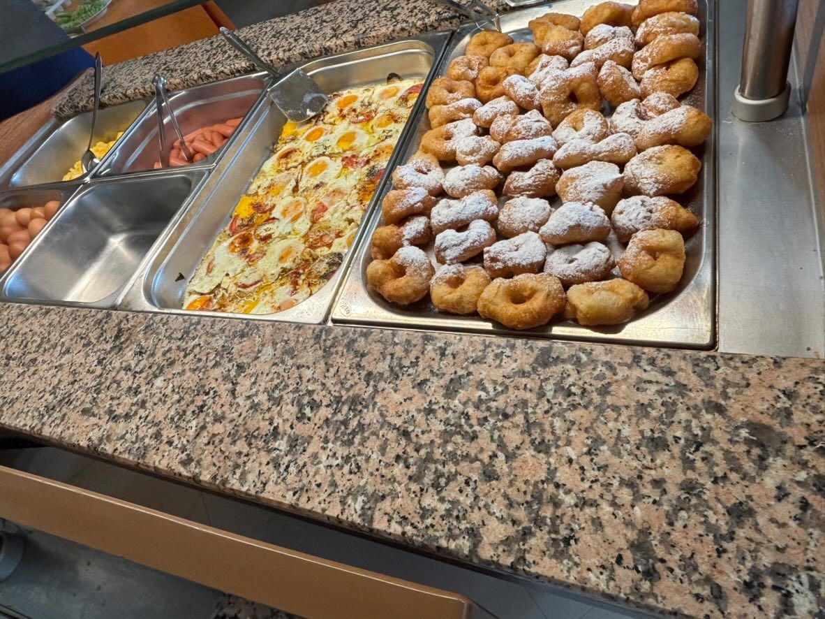 Ресторантът към хотела работи за своите гости на база BB (с включена закуска) - В стойността на нощувката е включена закуска на блок (шведска) маса, също чай, кафе (и още някои топли напитки от автомат), наливна трапезна вода, както и три вида сок.