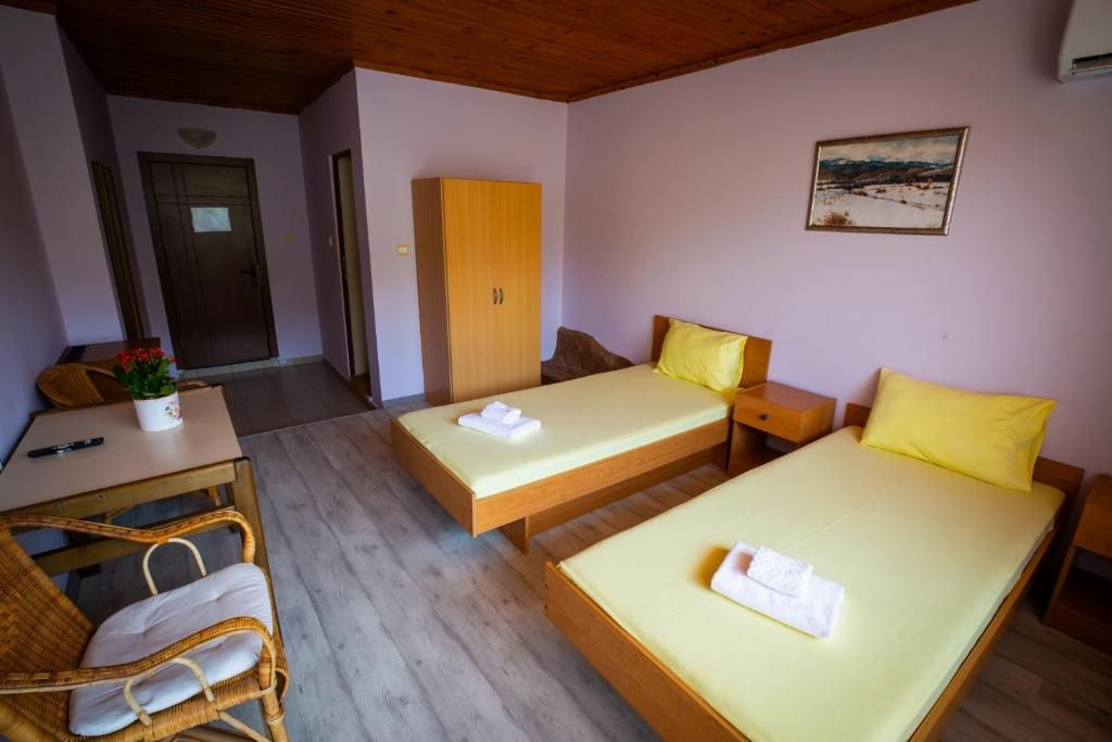 - фамилна стая с две единични отделни легла и едно двойно легло.