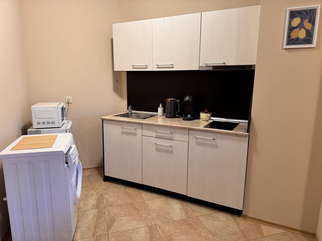 Апартаментът е подходящ за двойки, самостоятелни гости или бизнес пътувания. Разполага с функционално разпределение – отделна спалня, уютна дневна зона и напълно оборудван кухненски бокс, осигуряващи всичко необходимо както за кратък, така и за по-дълъг престой.